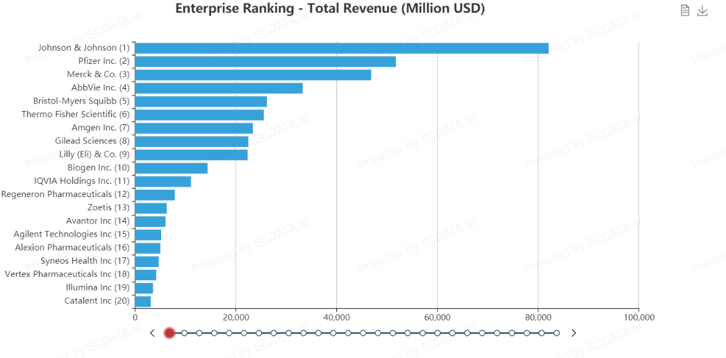 We can see that Johnson & Johnson ranks No. 1, Pfizer Inc. ranks No. 2, Merck & Co. ranks No. 3 and AbbVie Inc. in total revenue.