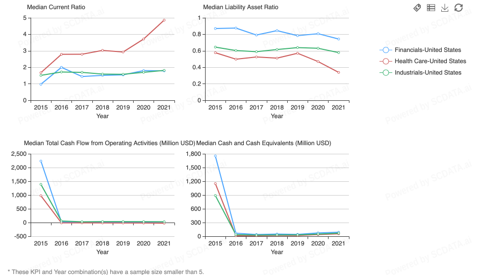 While the cash flow trend are about the same, the median current ratio is exponentially increasing rapidly faster vs the other industries