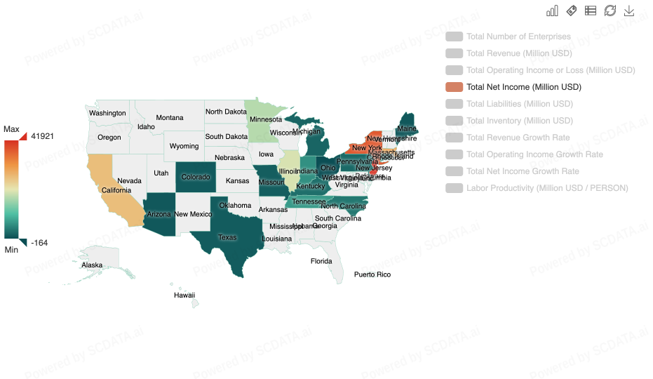 Comparing Net Income between Financial and Health Care Enterprises Throughout the US