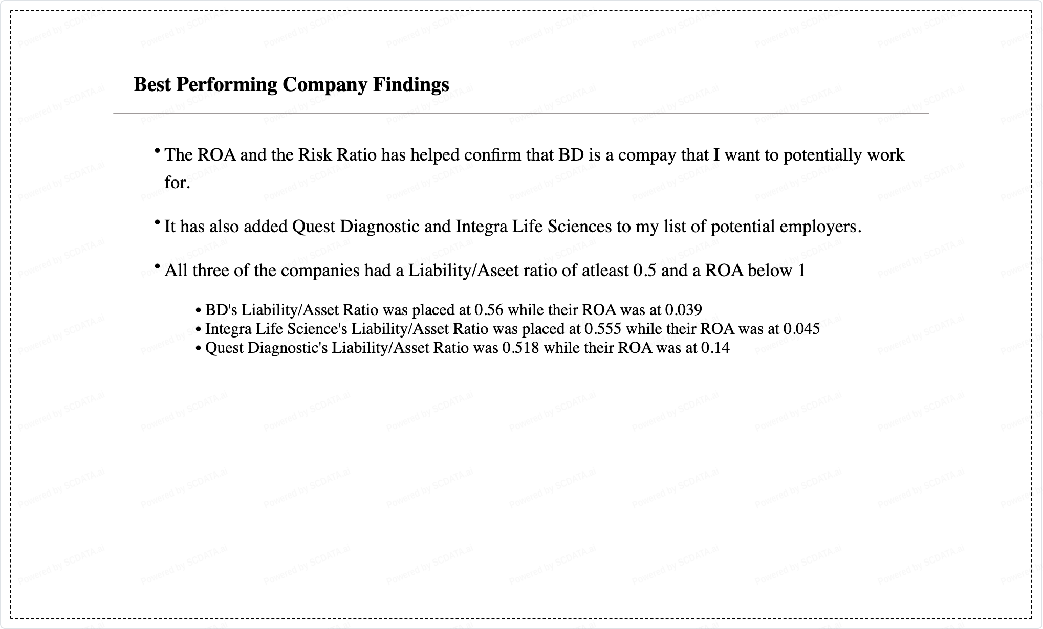 The ROA and the Risk Ratio has helped confirm that BD is a compay that I want to potentially work for.