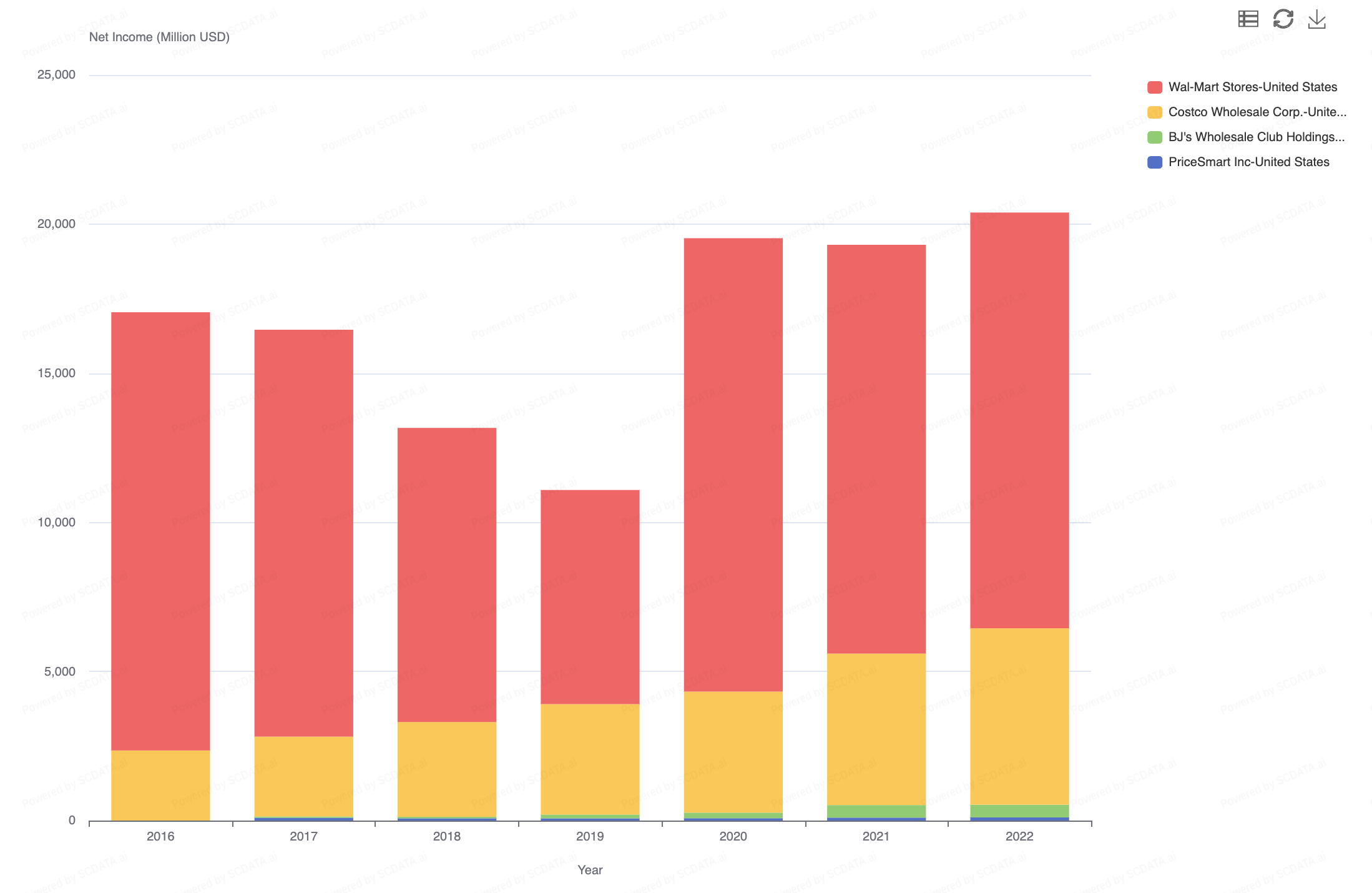 Net income perspective: Walmart #1, Costco#2, BJs #3