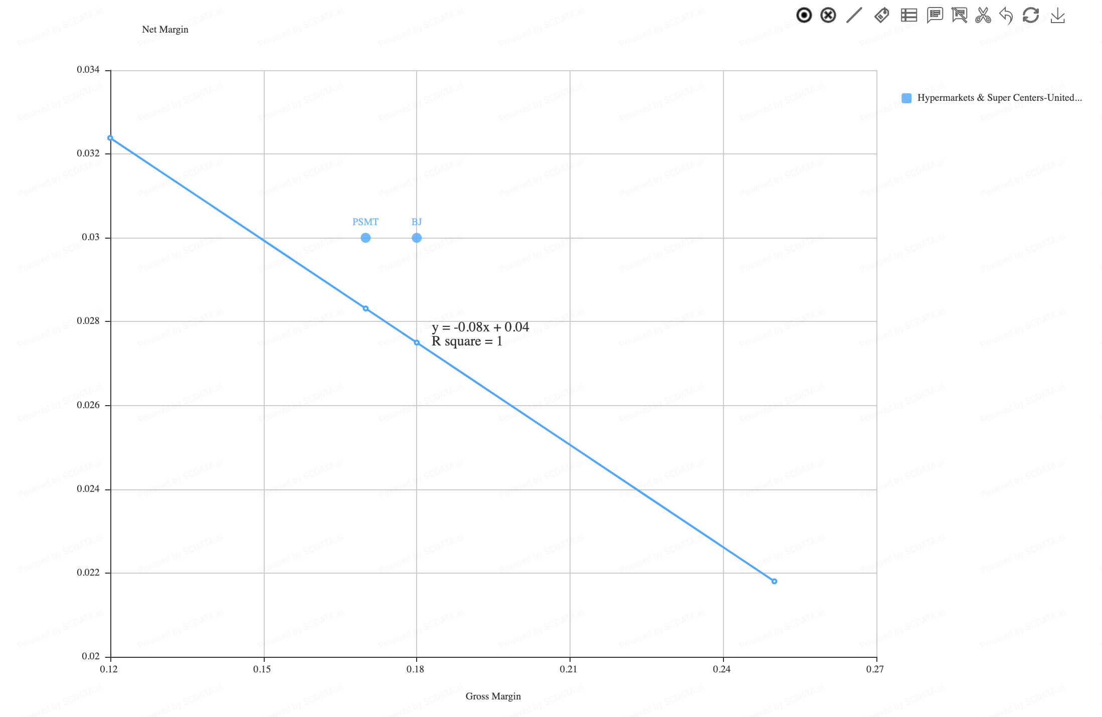 For supermarket companies , high gross margin (high value-added products) doesn't give a high net margin! Changing net margin to operating margin gives a similar result.