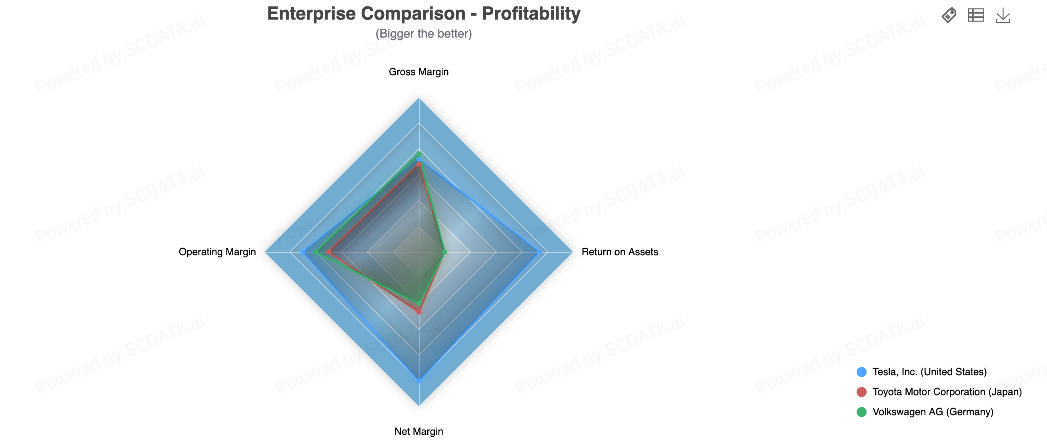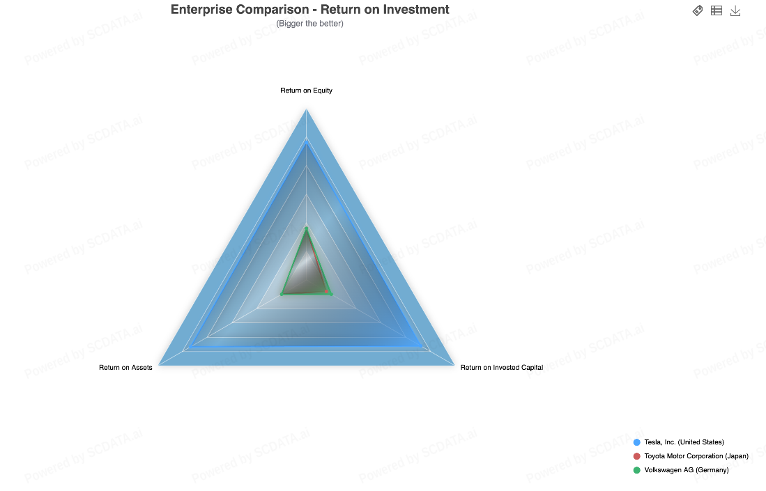 Interpretation: A high ROI generally indicates that the company is managing its capital expenditures efficiently. Lower ROI might suggest slower payback on investments, either due to lower margins or higher operational expenses. A higher ROI for Tesla could indicate its ability to generate substantial returns despite being smaller in size, which may be due to a focus on high-margin electric vehicles and advanced technology.