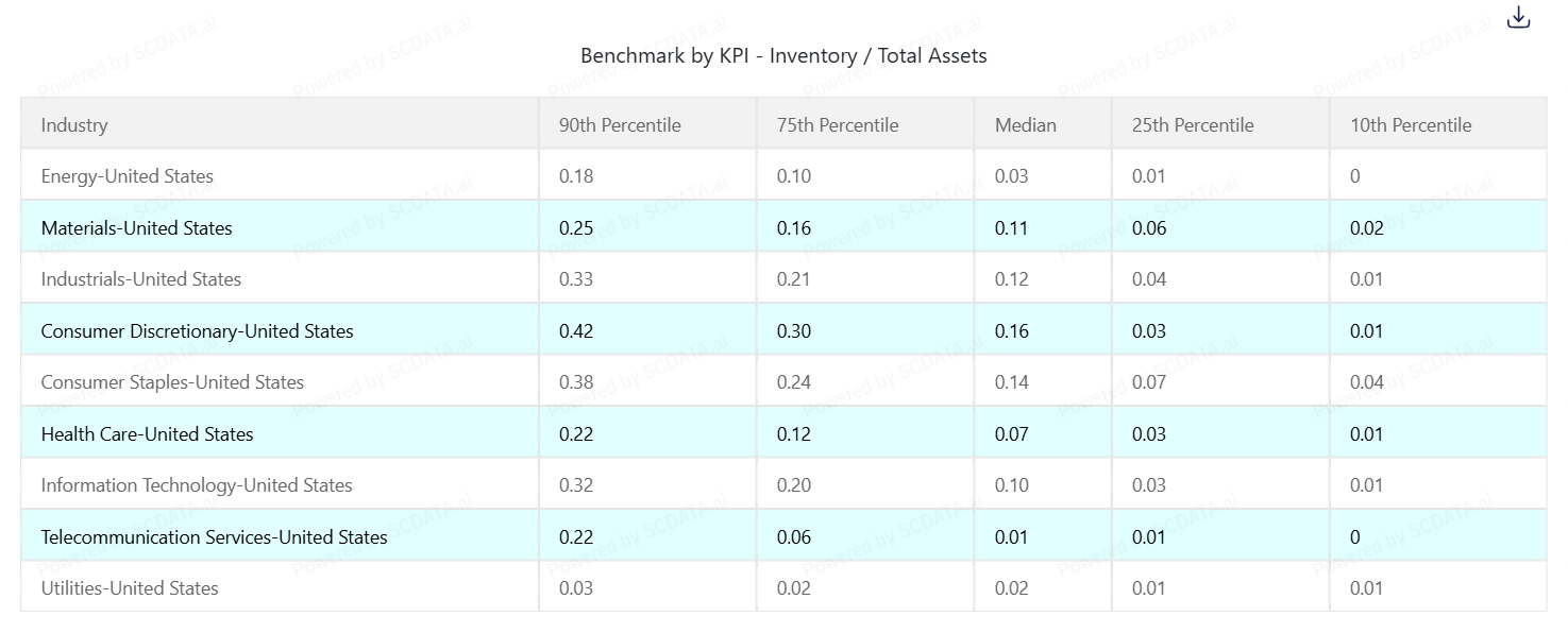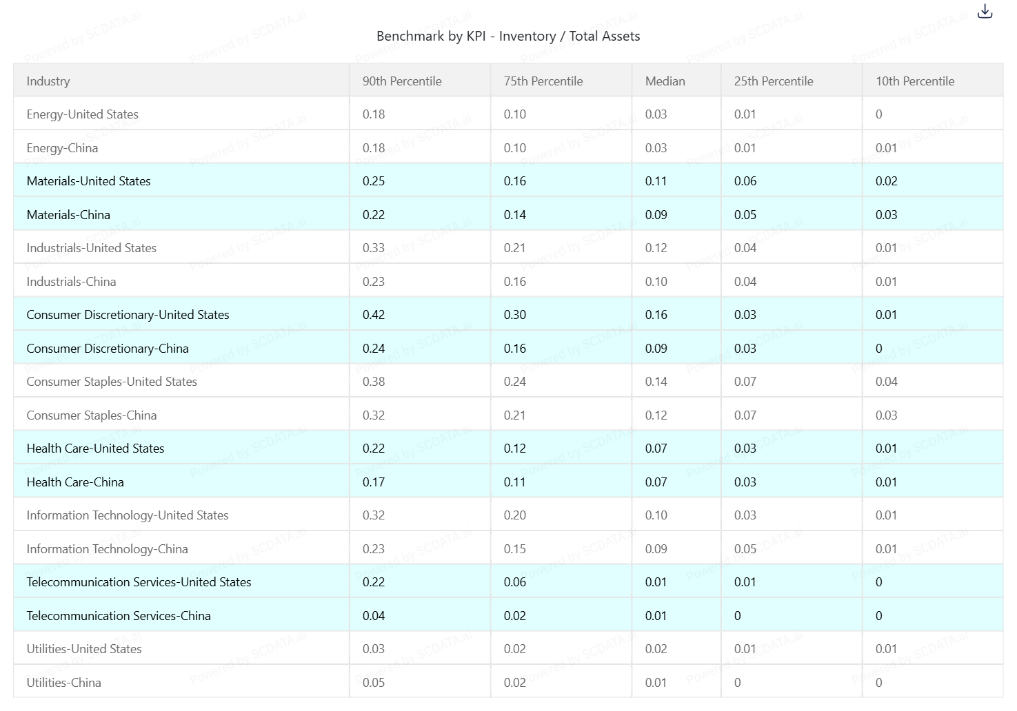 Benchmark by KPI - Inventory / Total Assets United State vs China