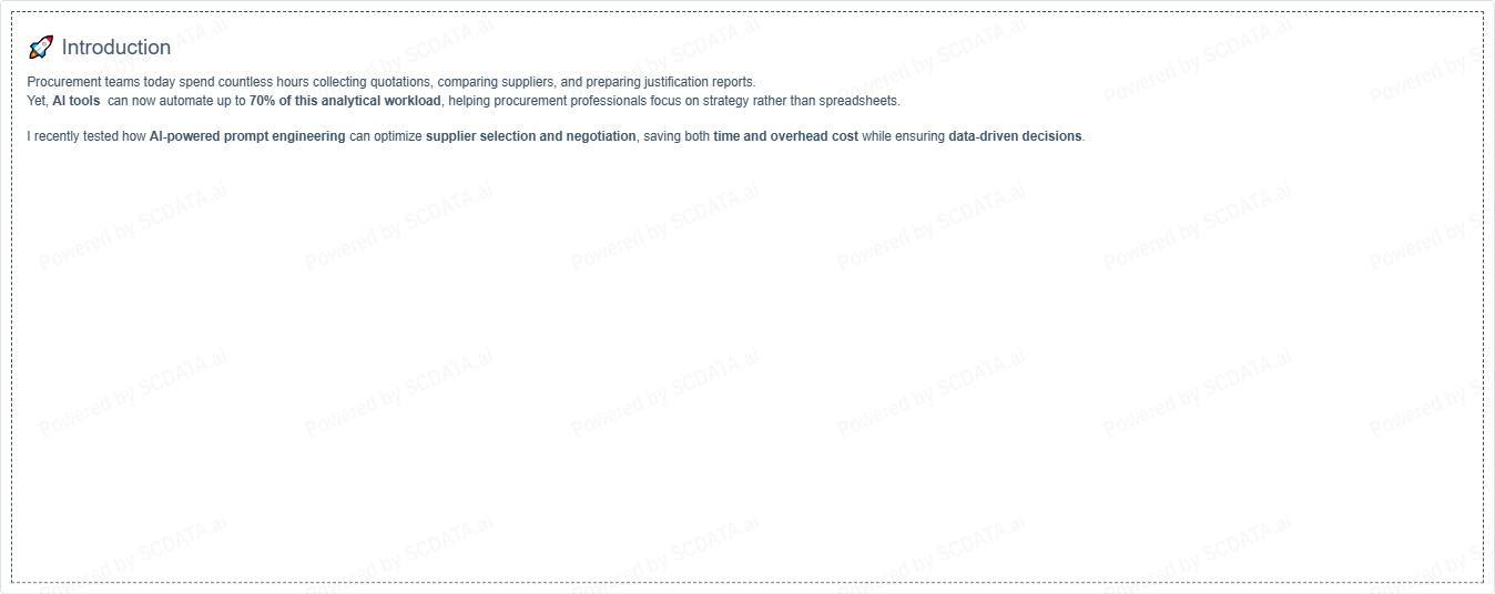 I recently tested how AI-powered prompt engineering can optimize supplier selection and negotiation, saving both time and overhead cost while ensuring data-driven decisions.