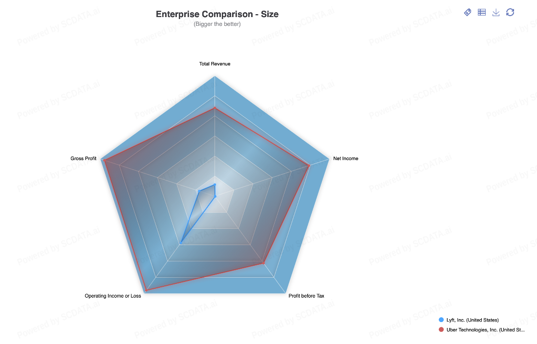 Lyft is the 9th largest in the US whereas Uber dominates in first place
