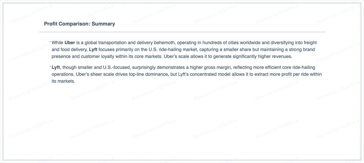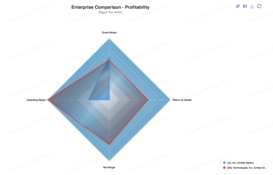 Lyft outperformed Uber Gross Margin. Uber is financially stable and has a liability over assets < 1, Lyft shows 0.86 compared to Uber's 0.56 which means more financial risk and higher bankruptcy risk in downturns