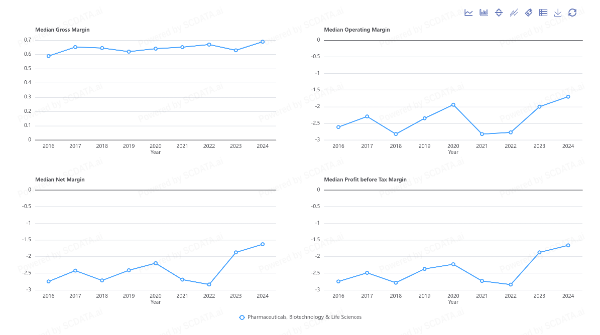 Industry: Compare the pharmaceutical manufacturing industry and the overall Industrials industry on grounds of profitability, growth and financial risk.