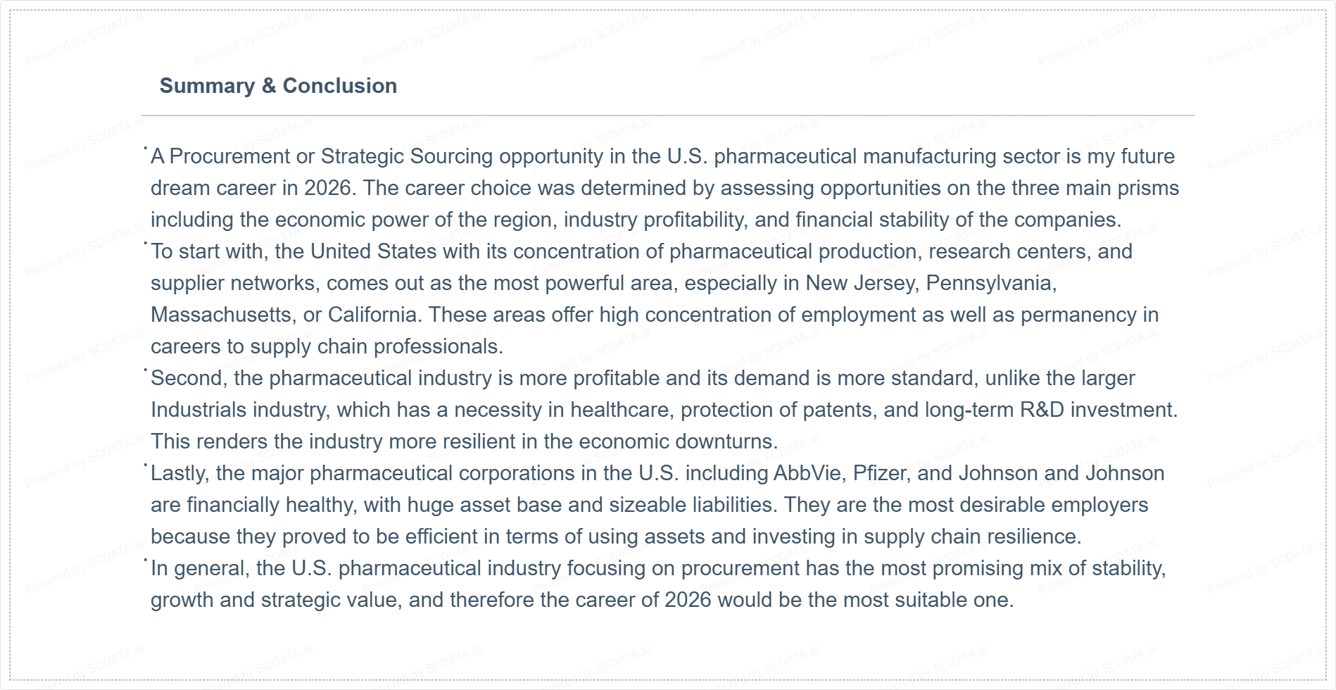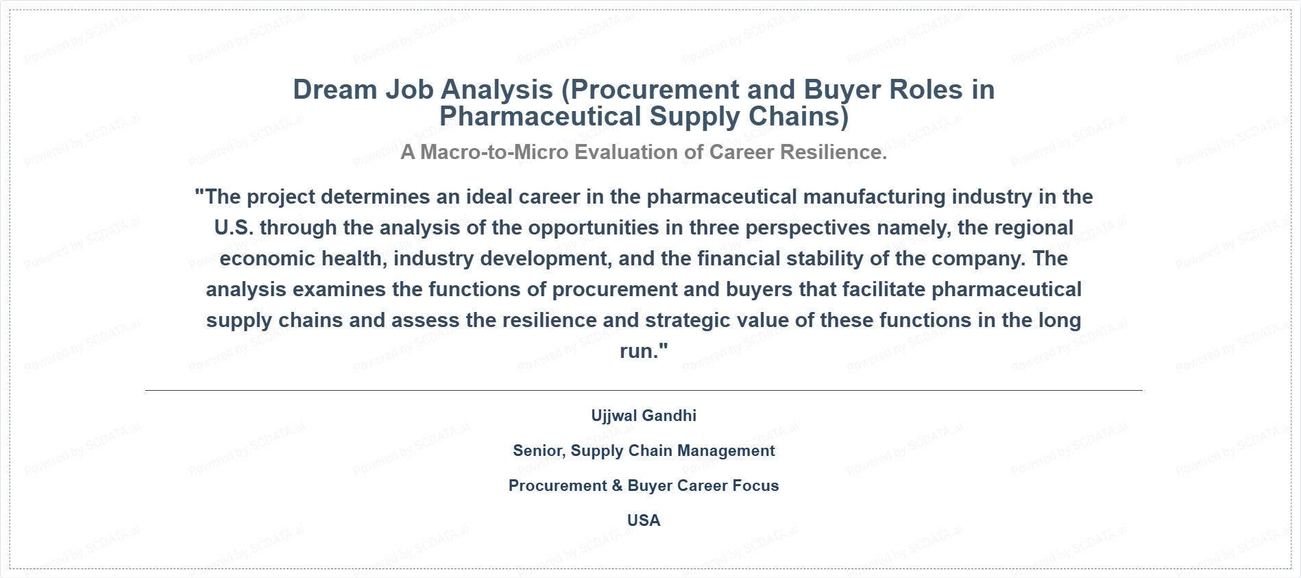 Summary: Generalize the regional, industry, and company-specific information to identify the most robust and desirable career within the field of procurement and buyer functions in the pharmaceutical supply chains.