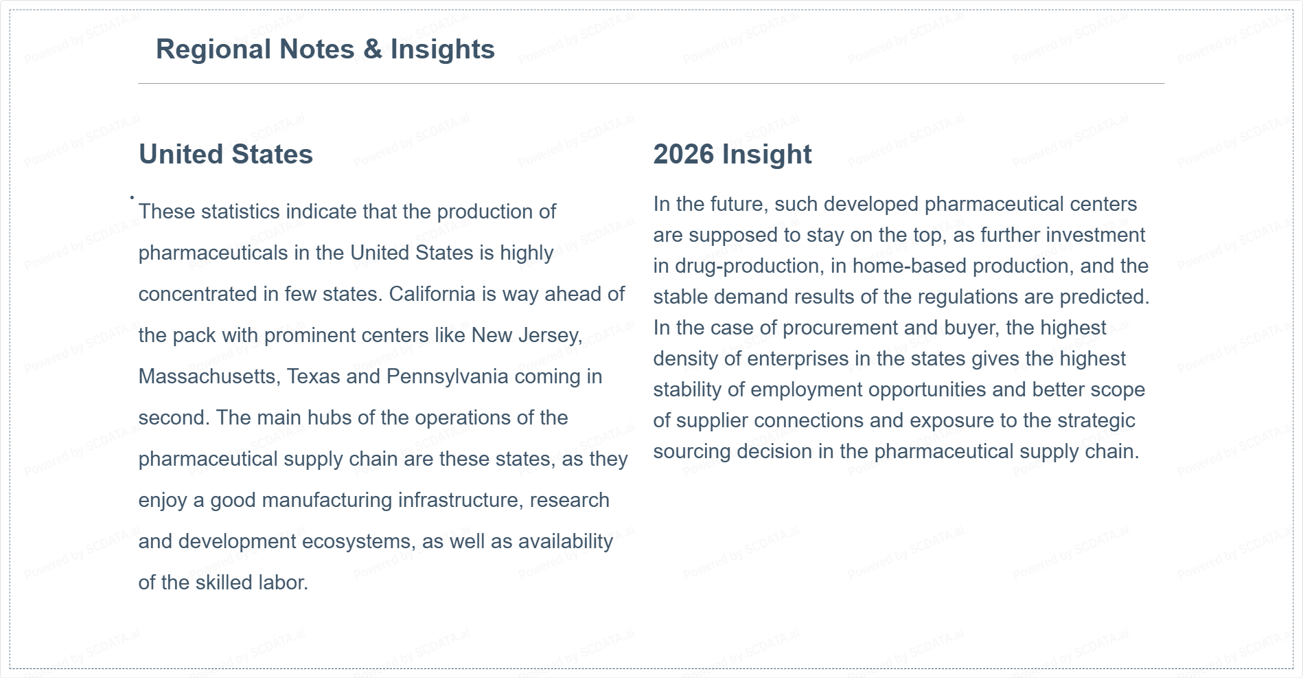 Region: Determine the U.S. states as having the greatest pharmaceutical manufacturing and supply chain activity, including regions that provide good procurement and career buyer opportunities.