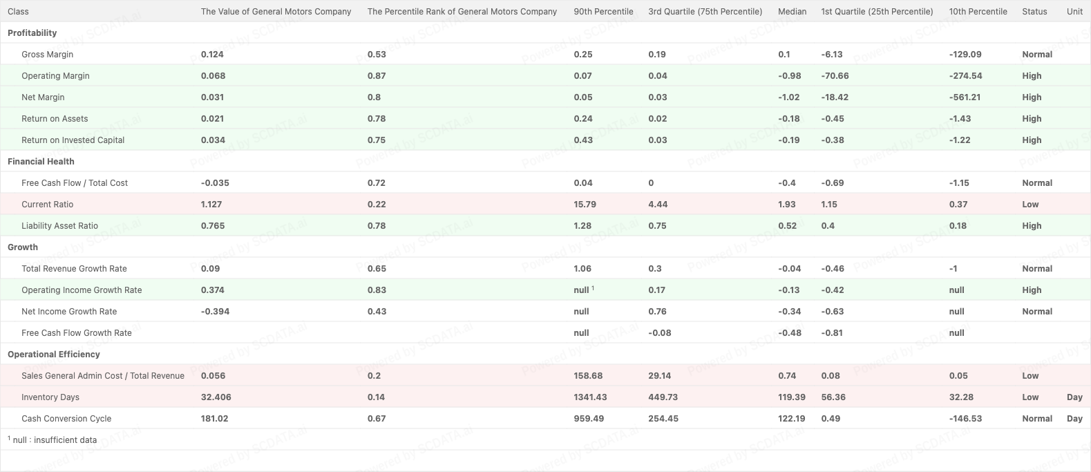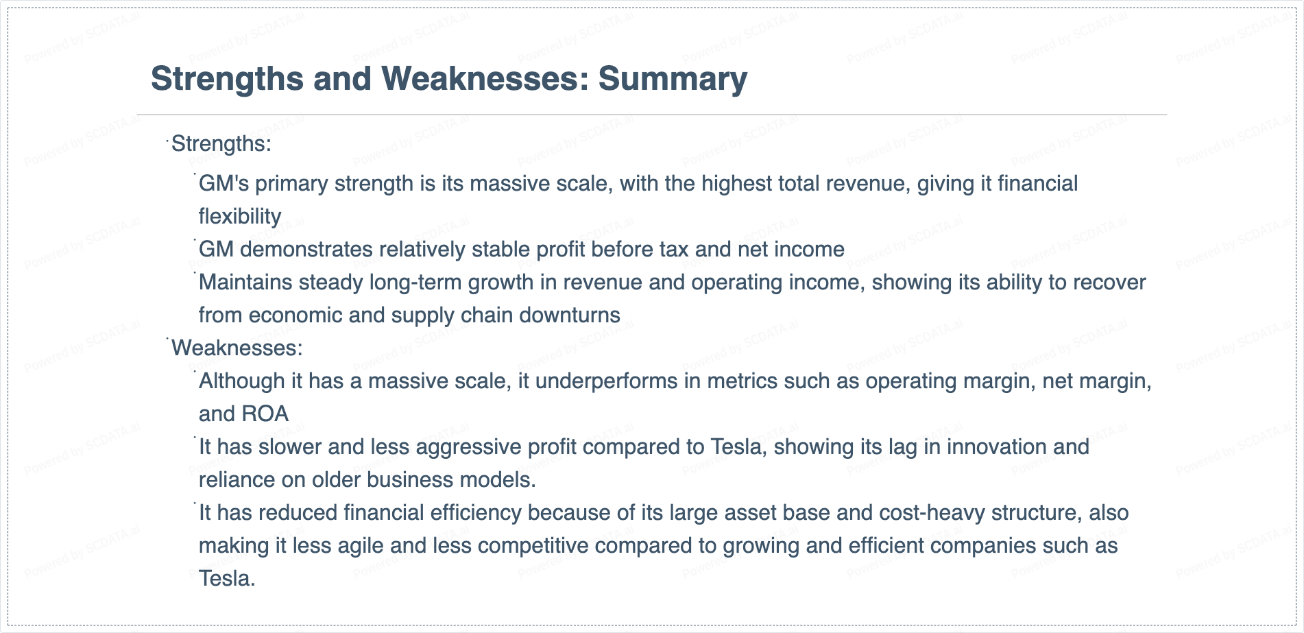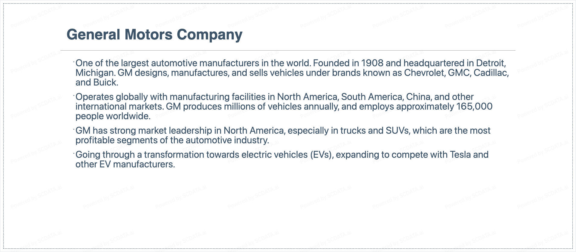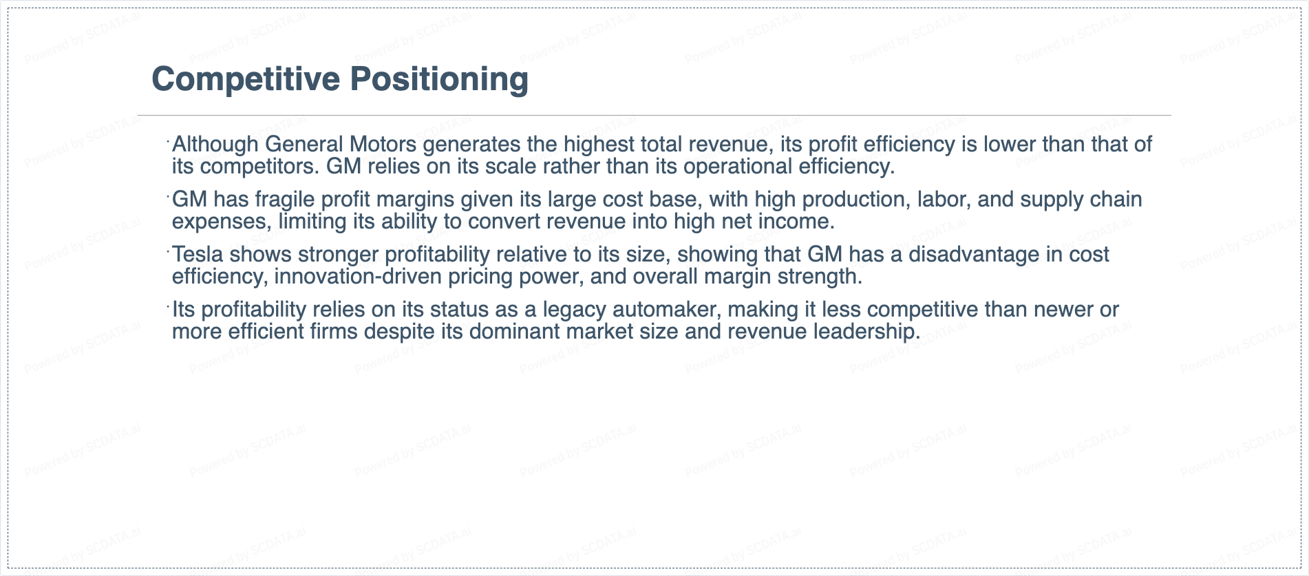 GM has strong market leadership in North America, especially in trucks and SUVs, which are the most profitable segments of the automotive industry.