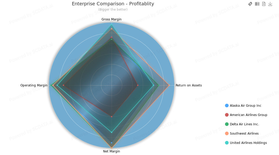When it comes to Net Income American airlines is at 4th position, lower than Southwest Airlines which is comparitively half of American