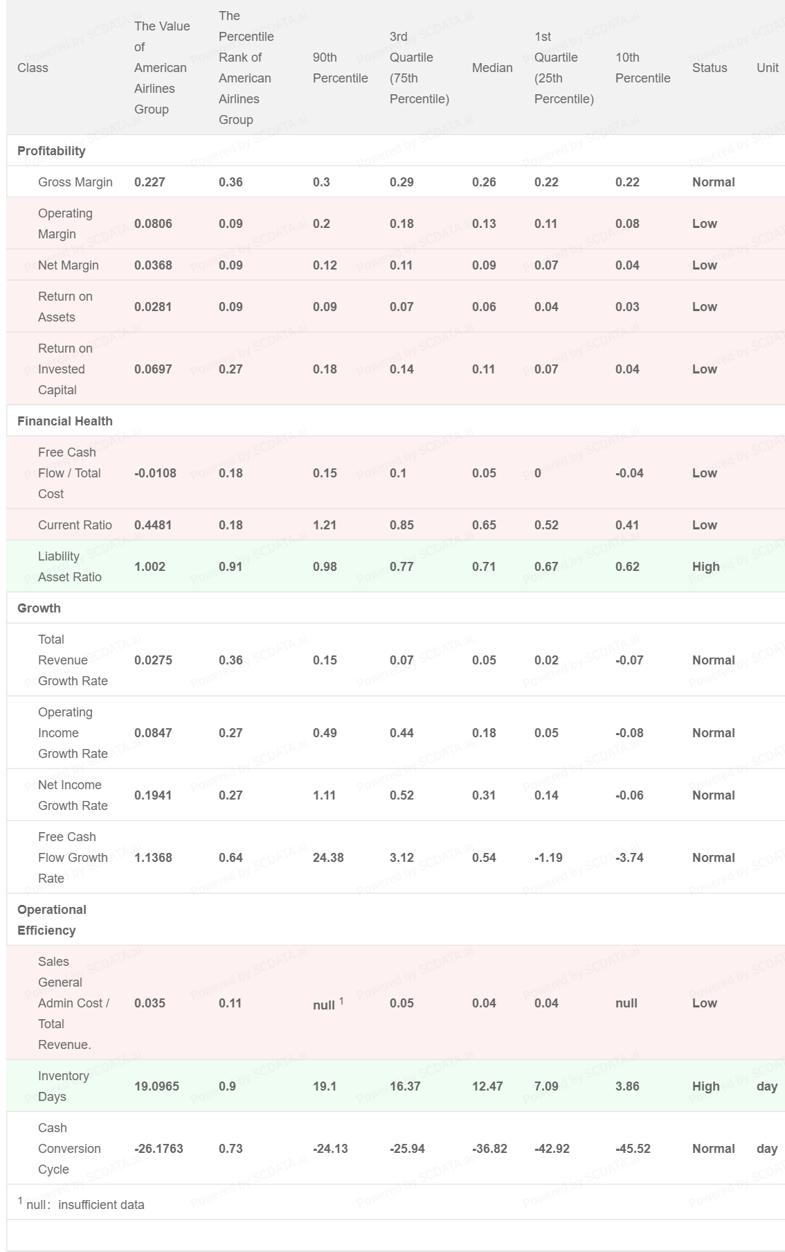 American Airlines is visibly under performing in almost all the aspects of KPI.