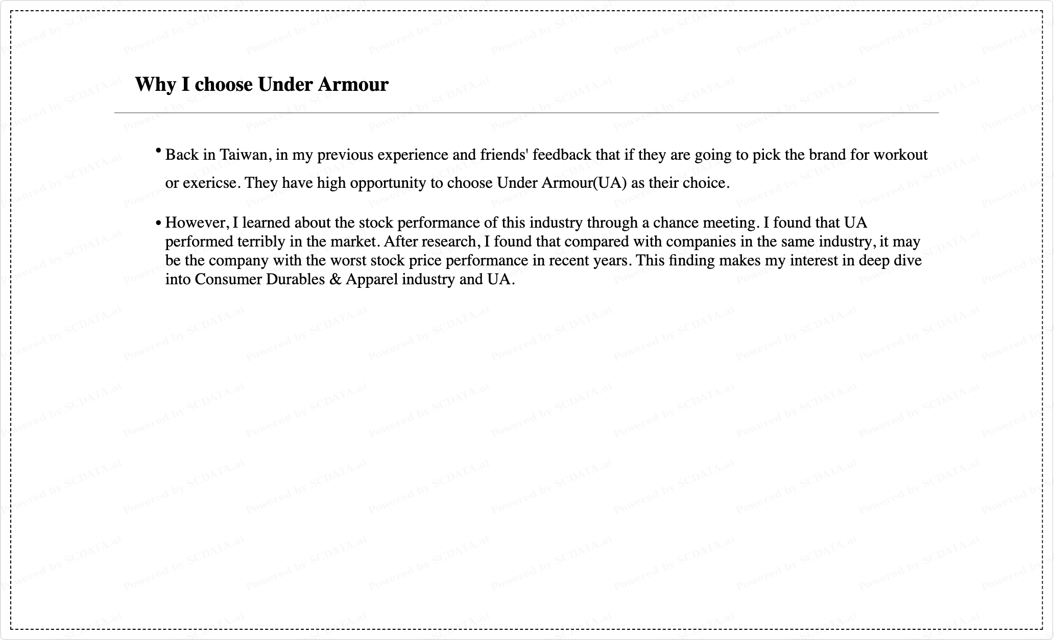 1. In the GCPS's classification, UA belongs to consumer discretionary / Consumer Durables & Apparel / Textiles, Apparel & Luxury Goods / Apparel, Accessories & Luxury Goods