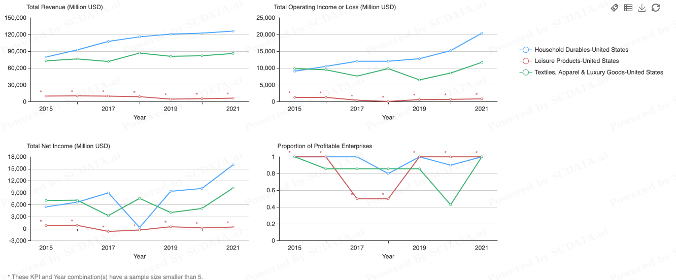 Looking at growth, the textiles industry rapidly grew after 2020—the same as the household industry, which had been growing flat in past years.
