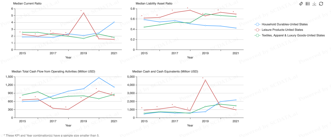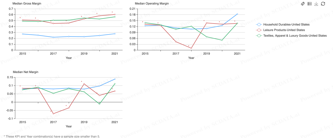 Although the household industry has a lower gross margin, it has a higher net margin and operating margin. The household industry performs well in profitability. The textile industry UA belongs to has a low operating margin and negative net margin after 2019. It turns out that the pandemic impacted it. I think covid-19 entails higher labor costs, which is critical to the labor-intensive industry.