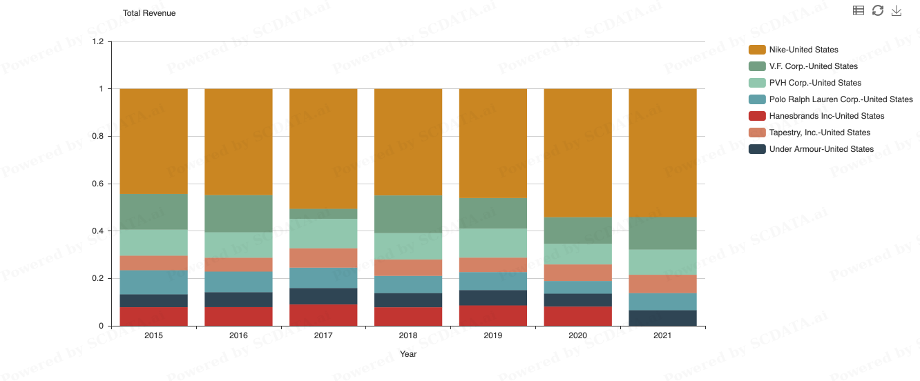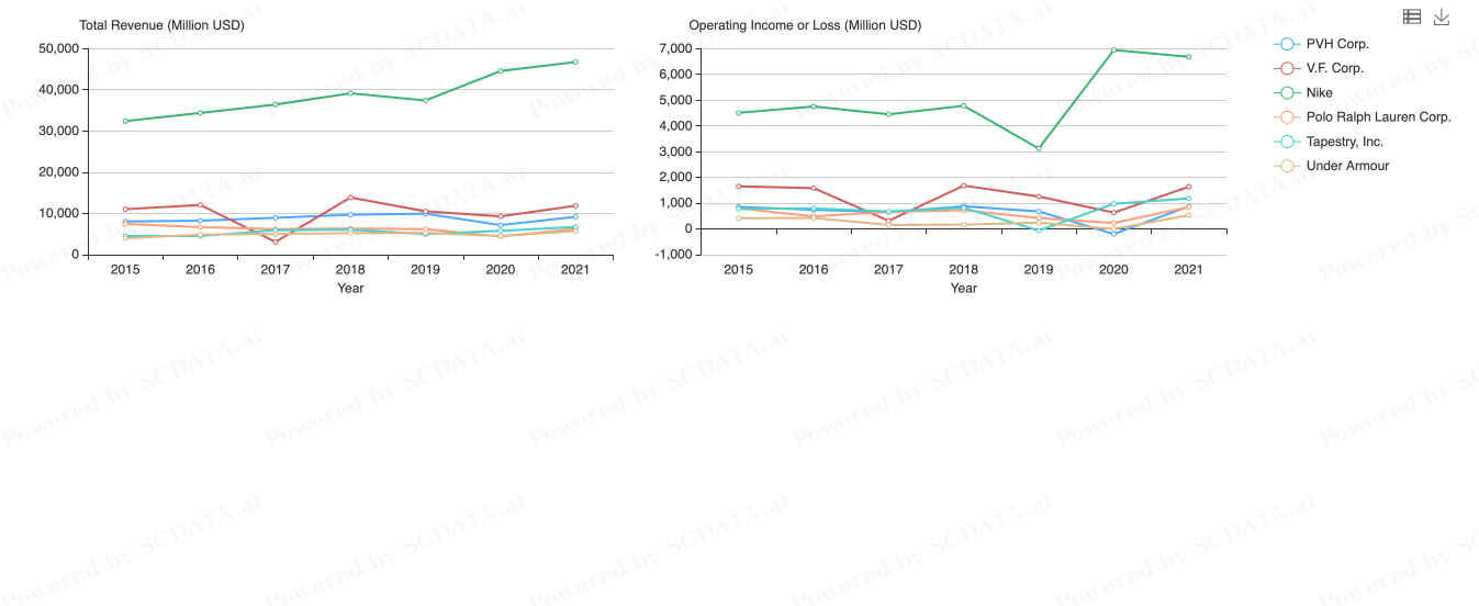 Trend analysis could let us see the company's performance over time. Covid-19 impacted every company. However, Nike has the most agility; we can see they had a significant boost in 2020.