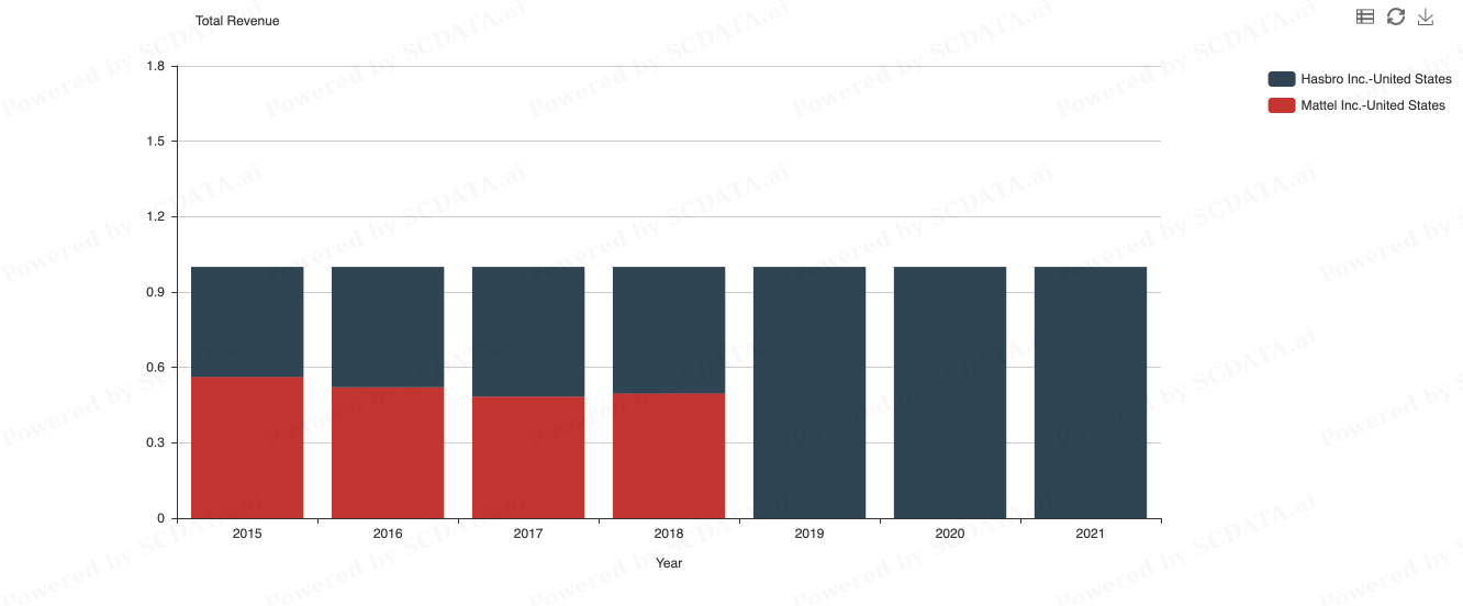 Only two competencies in SP500 belong to the leisure product industry. After 2019, there's only Hasbro dominated the market.