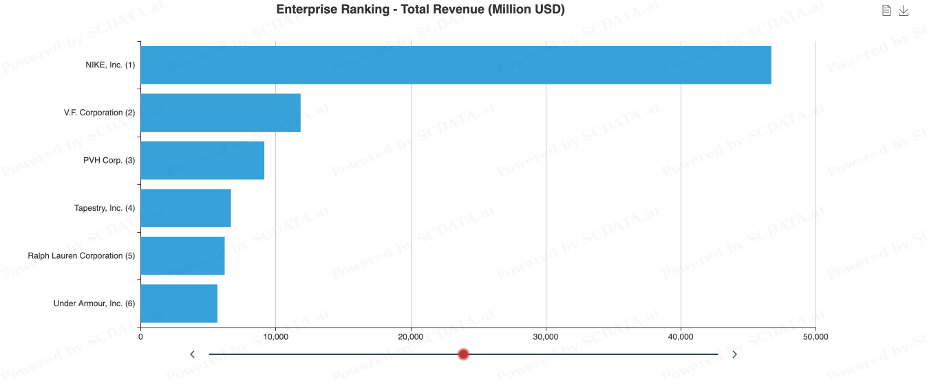 In the enterprise ranking on the total revenue shows that Under Armour has the smallest revenue.