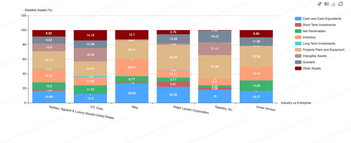 From the post-Covid assets breakdown, I found that UA has much more cash than its peers. UA is more efficient in generating cash or experiencing growth in its operations. It should utilize those cash to invest in the business.