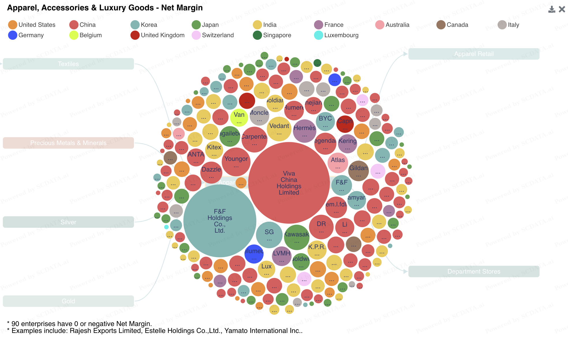 In terms of the world's apparel industry. Unlike the US market, all segments with a positive net margin. However, almost every segment's margin is lower than in the US.