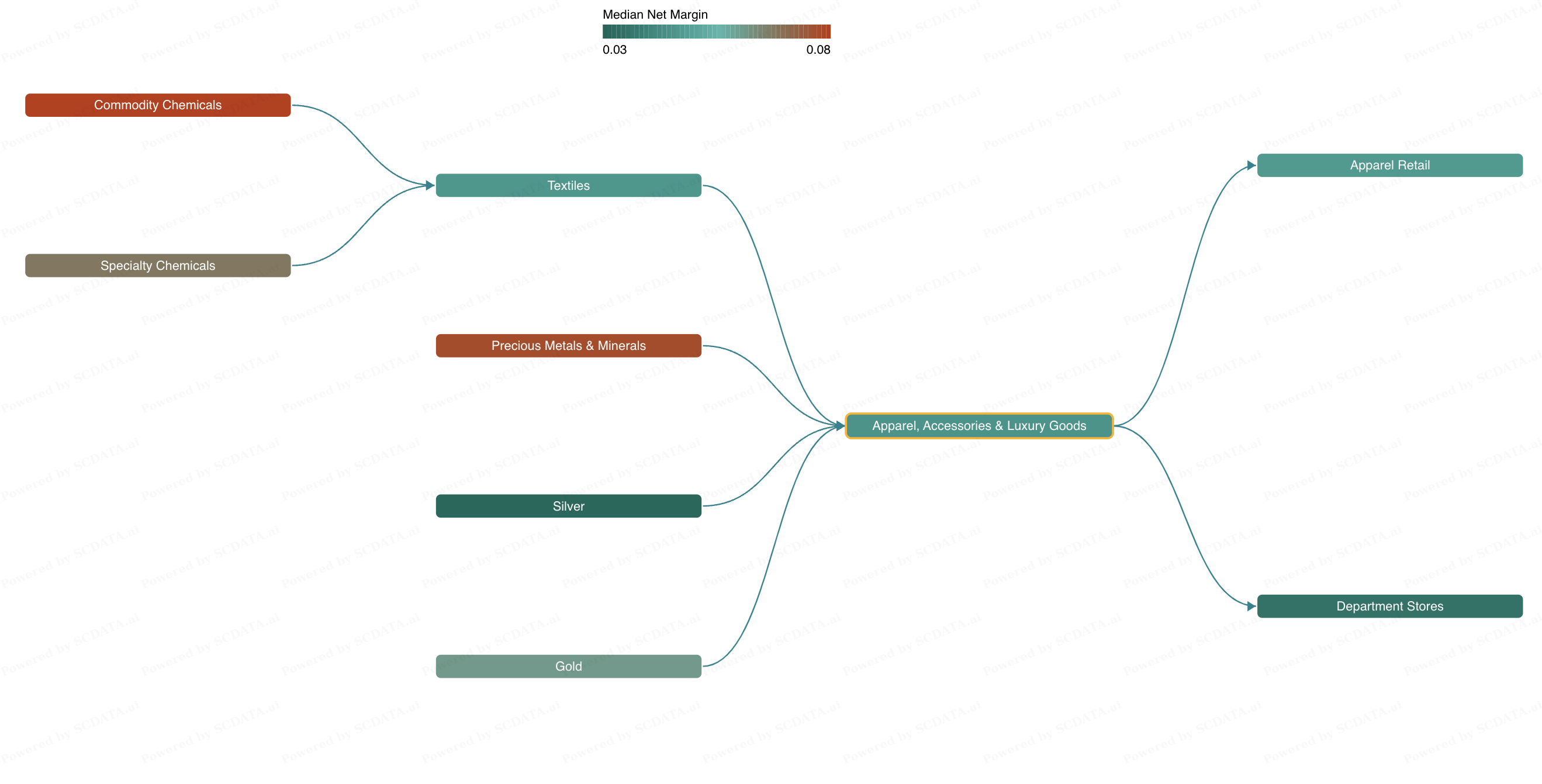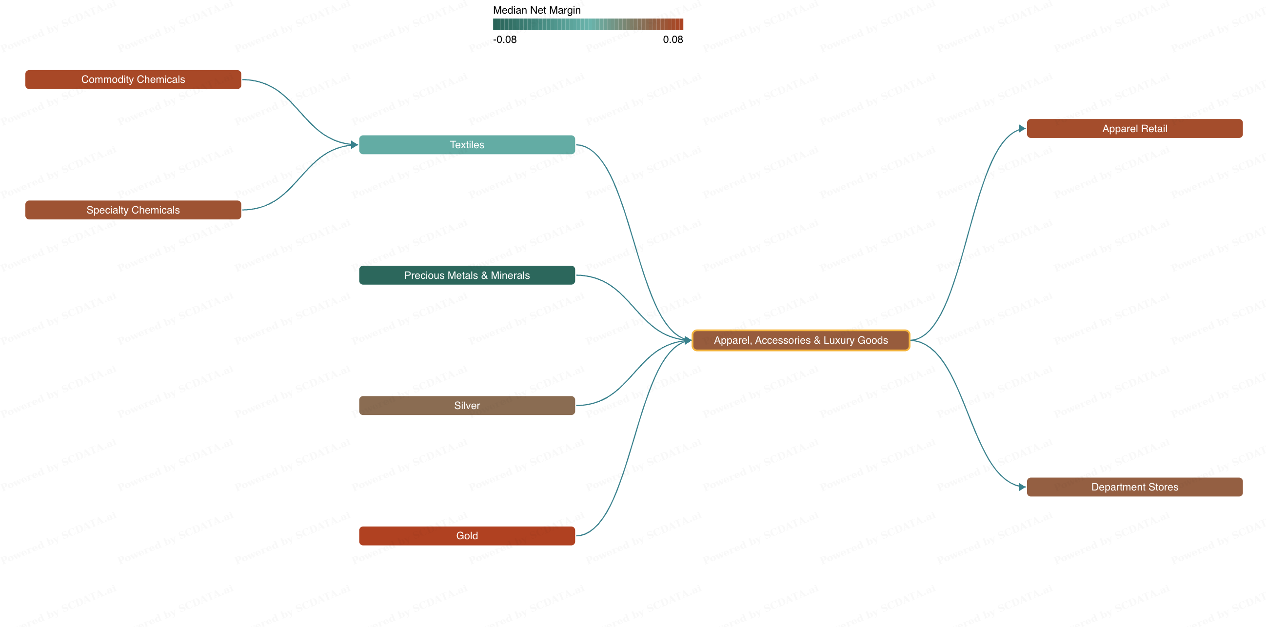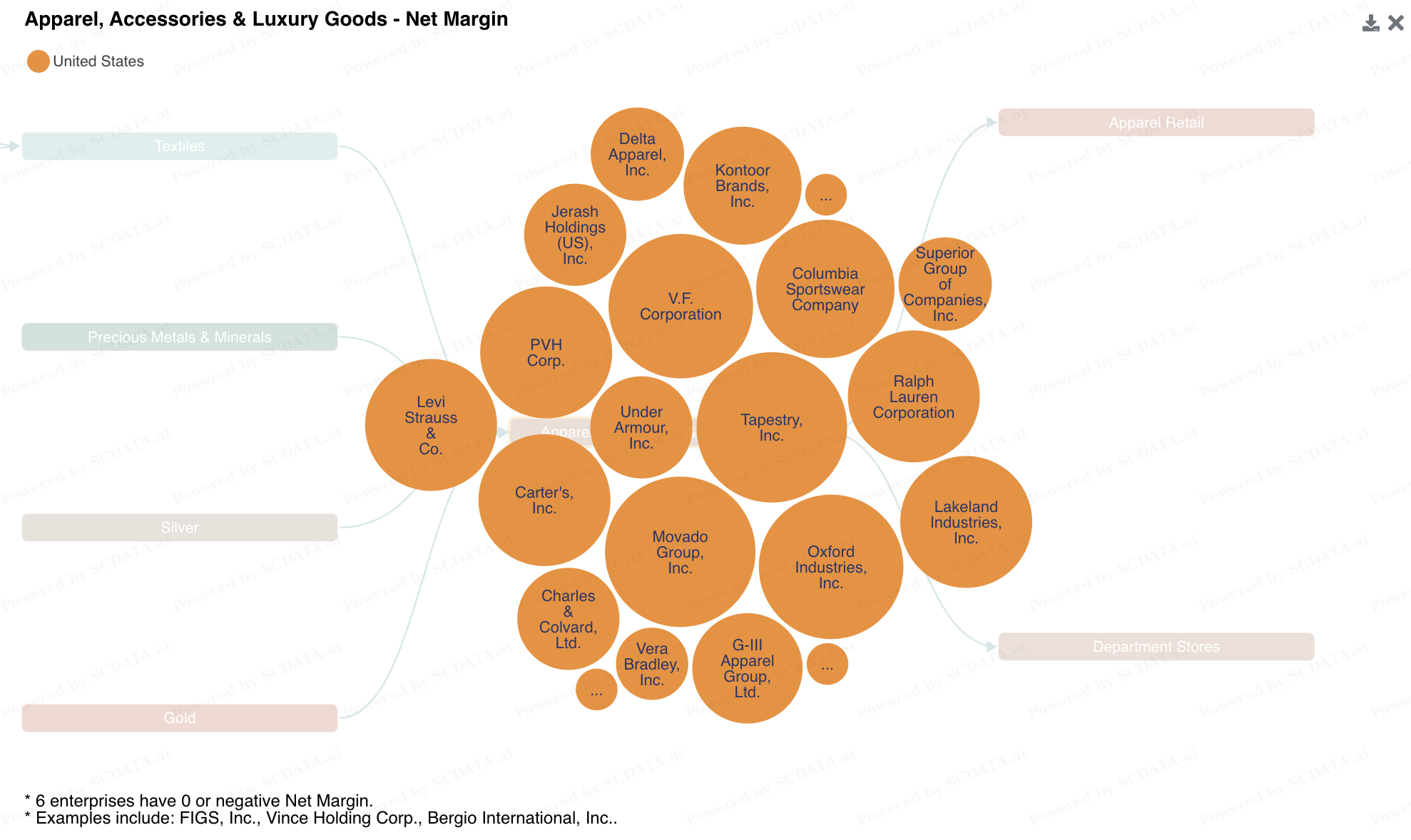 Let's see the UA's sub-industry, Apparel, Accessories & Luxury Goods. Except for the upstream textiles and precious metals, others have a positive net margin.