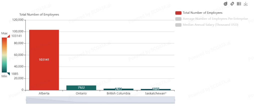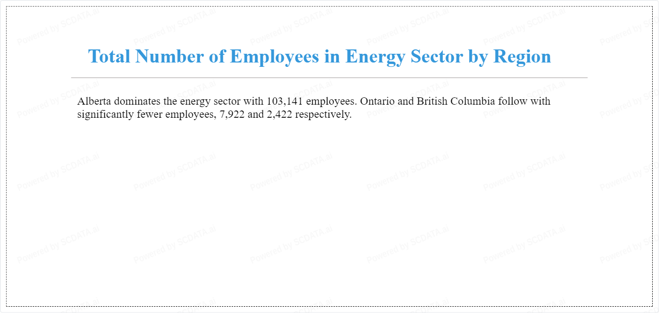 Alberta dominates the energy sector with 103,141 employees. Ontario and British Columbia follow with significantly fewer employees, 7,922 and 2,422 respectively.