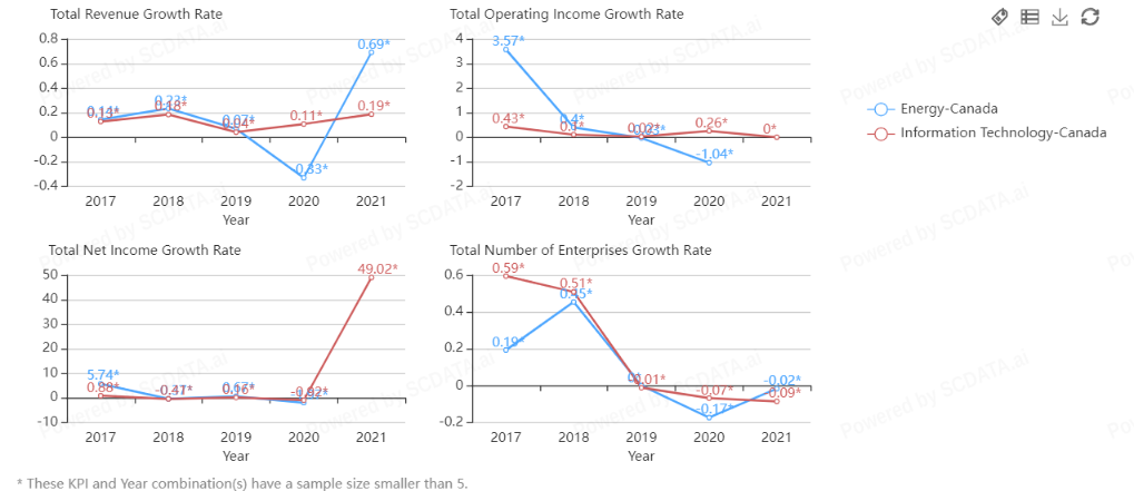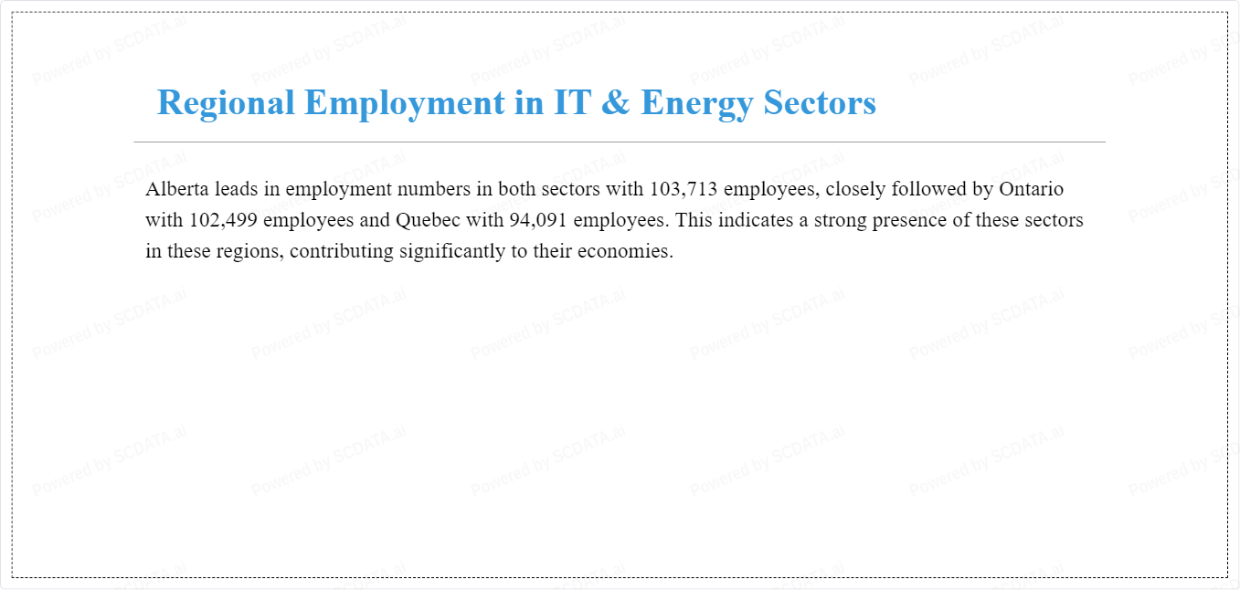 Abstract: This analysis provides a comprehensive analysis of the employment, enterprises, and profitability in the energy and IT sectors across different regions in Canada. The analysis reveals significant regional variations in these sectors, with Alberta dominating in the energy sector and Ontario leading in the IT sector. The analysis also includes industry-wide benchmarks and comparisons for a more in-depth understanding of these sectors. The findings from this analysis can inform strategic decisions for businesses and policymakers in these sectors.