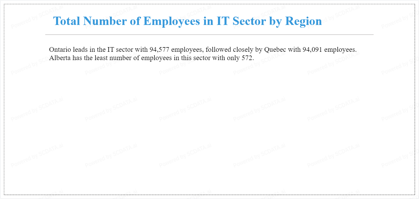 Ontario leads in the IT sector with 94,577 employees, followed closely by Quebec with 94,091 employees. Alberta has the least number of employees in this sector with only 572.