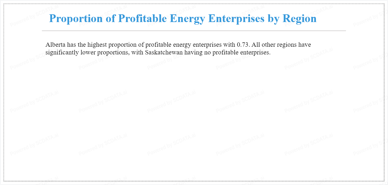 Alberta has the highest proportion of profitable energy enterprises with 0.73. All other regions have significantly lower proportions, with Saskatchewan having no profitable enterprises.