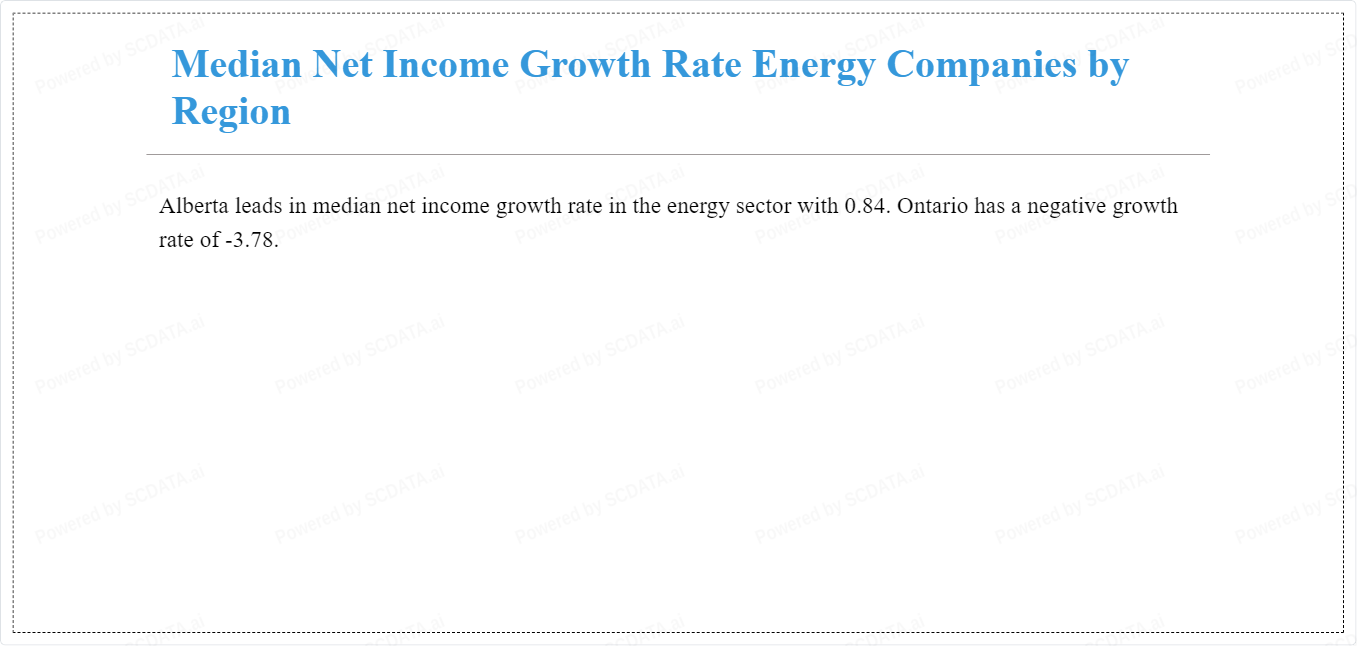 Alberta leads in median net income growth rate in the energy sector with 0.84. Ontario has a negative growth rate of -3.78.