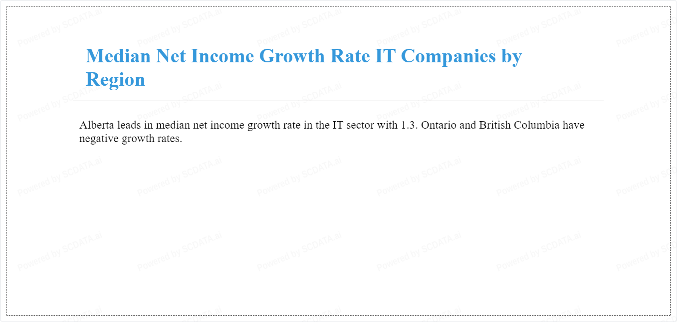 Alberta leads in median net income growth rate in the IT sector with 1.3. Ontario and British Columbia have negative growth rates.