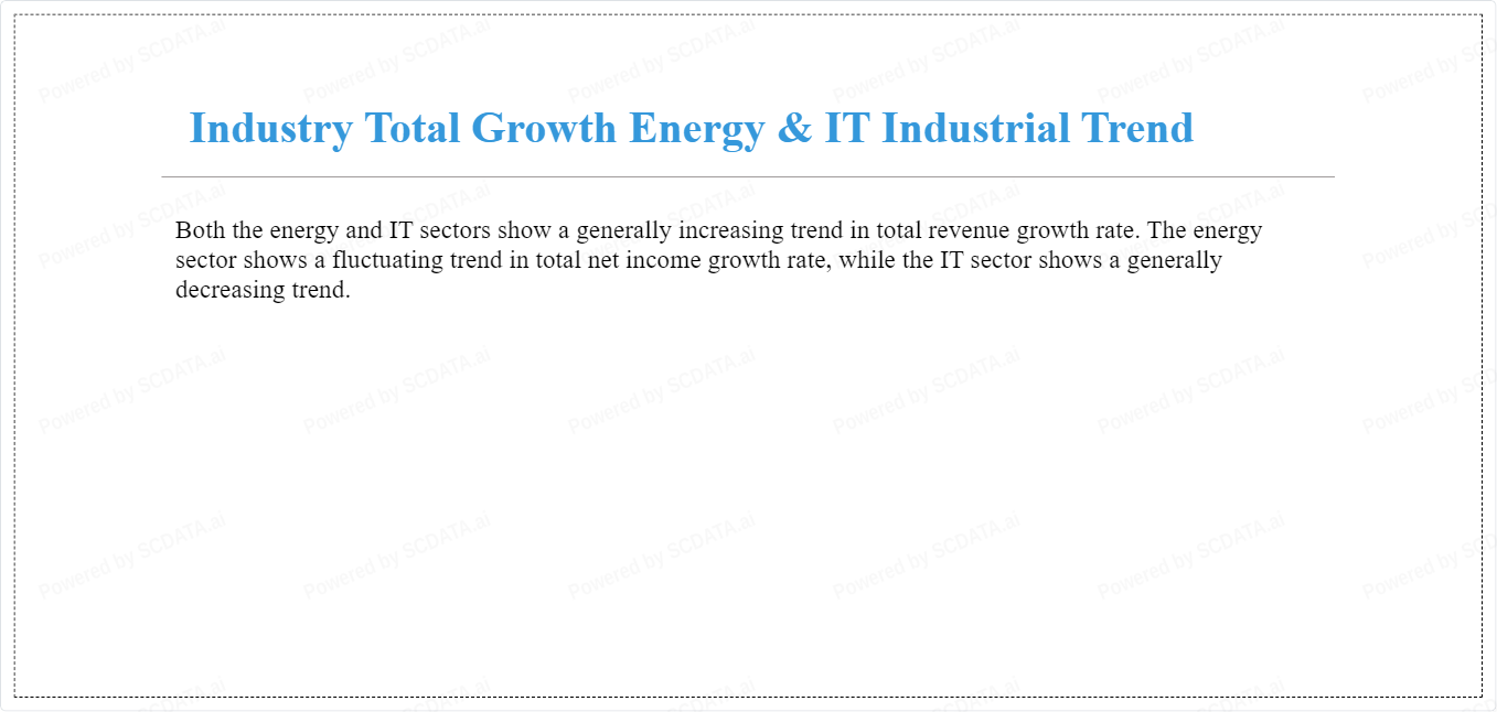 Both the energy and IT sectors show a generally increasing trend in total revenue growth rate. The energy sector shows a fluctuating trend in total net income growth rate, while the IT sector shows a generally decreasing trend.