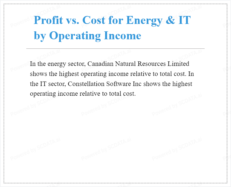 In the energy sector, Canadian Natural Resources Limited shows the highest operating income relative to total cost. In the IT sector, Constellation Software Inc shows the highest operating income relative to total cost.