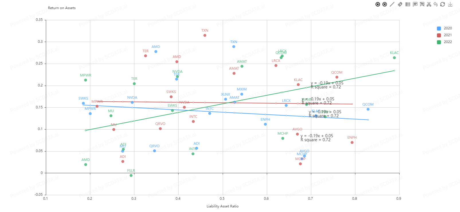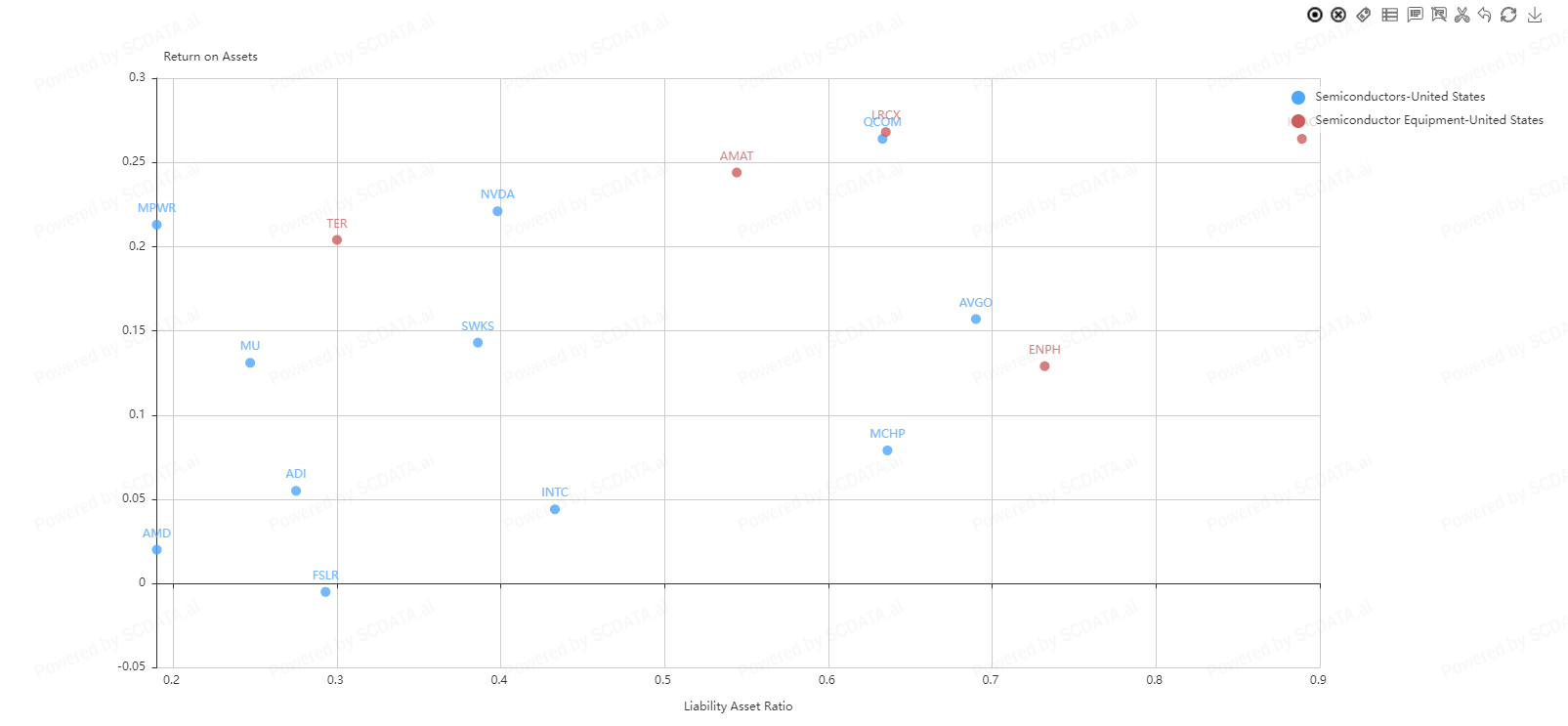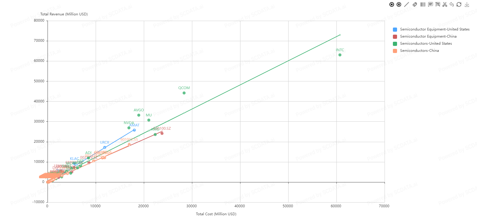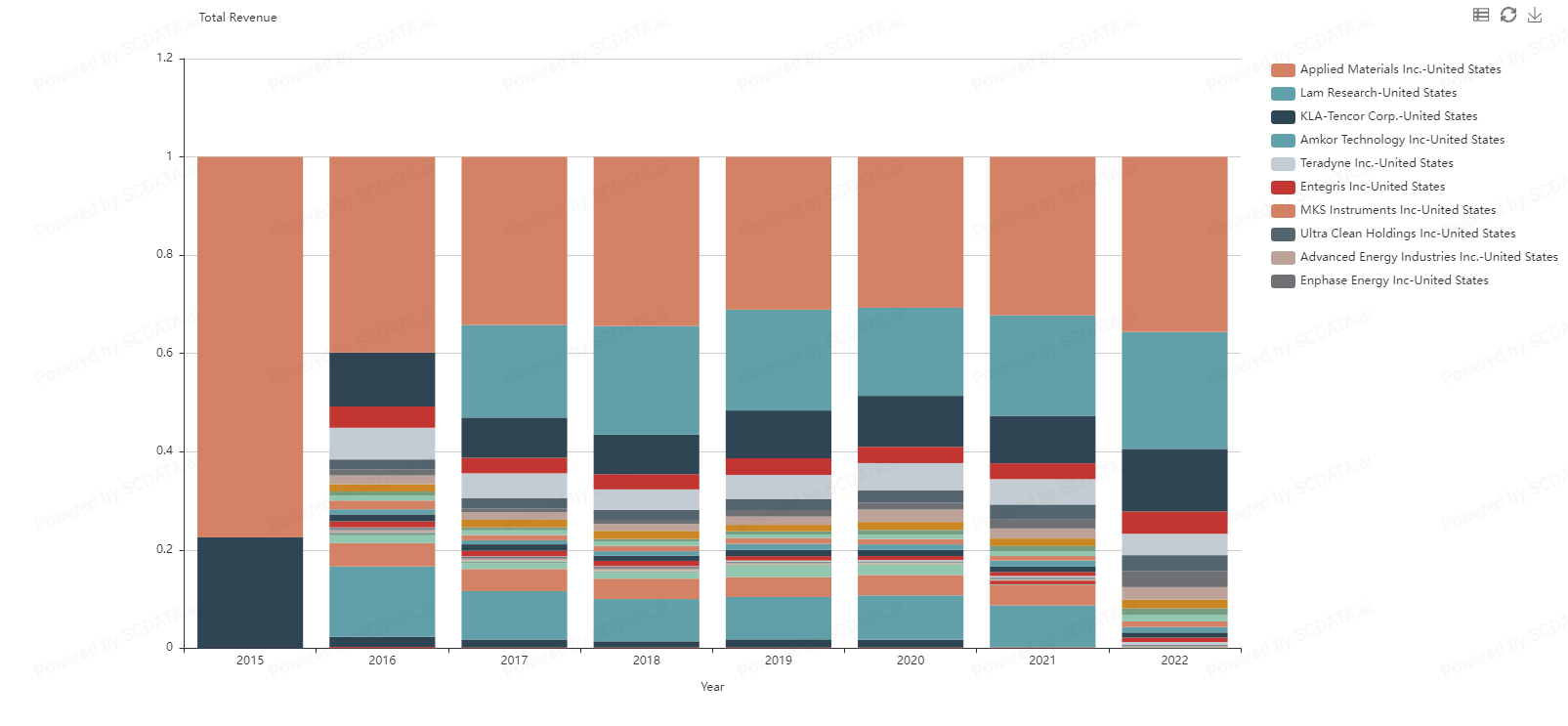5 Companies appear to be market leaders in the Semiconductor and Semiconductor Equipment space with intel dominating since 2015. What's interesting about this is total revenue does not seem to be in correlation with stock prices. Intel stock price steadily decreased from $50.00 down to 22$ in 2022 but Nvidia's stock price started the year off in the $260.00 range bottoming out in the $120 range. Why is NVidia’s stock doing so well in relation to Intel and Qualcomm when they appear to be doing better financially?