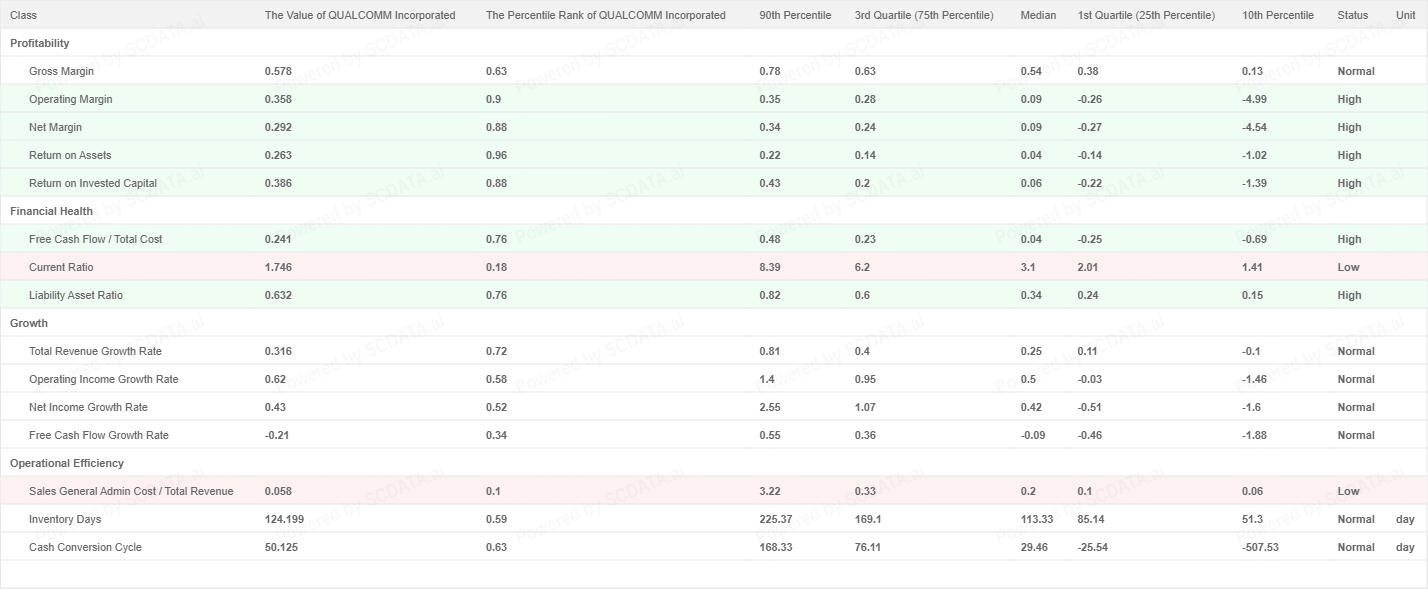 Ultimately I believe Qualcomm is an undervalued stock. The company's financial condition is good and its profitability is strong. The stock price should be performing better in relation to its competitors.