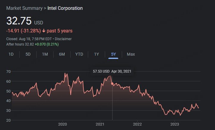 Intel Corp has been on a steady decline since 2021. What is going on with Intel Corporation the once Titan in Semiconductors?