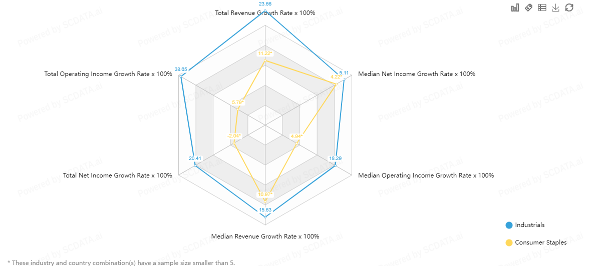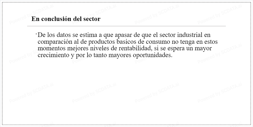 De los datos se estima a que apasar de que el sector industrial en comparación al de productos basicos de consumo no tenga en estos momentos mejores niveles de rentabilidad, si se espera un mayor crecimiento y por lo tanto mayores oportunidades.
