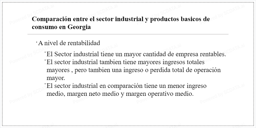 Comparación entre el sector industrial y productos basicos de consumo en Georgia