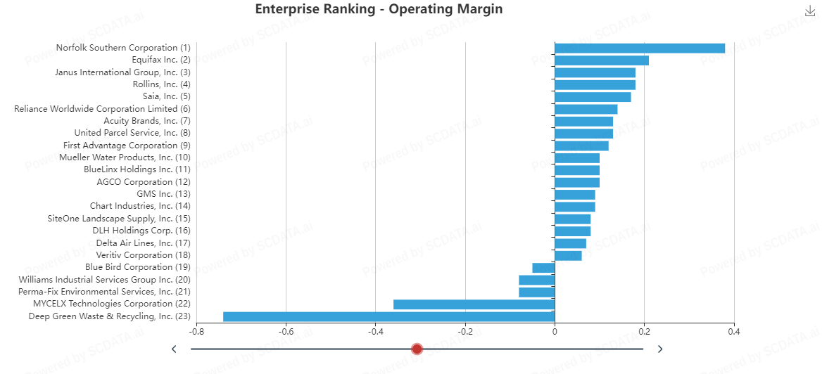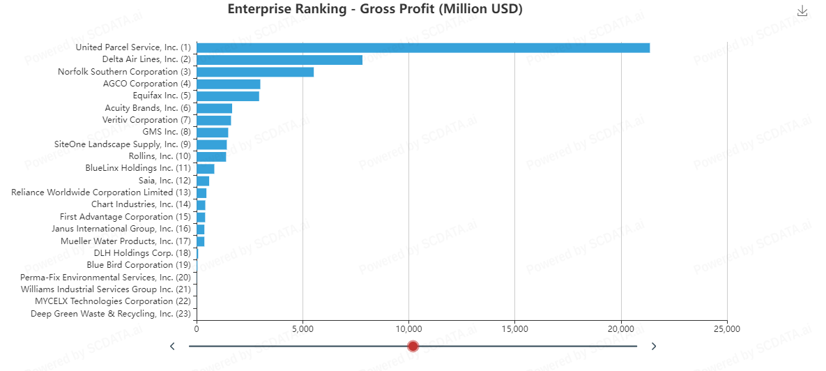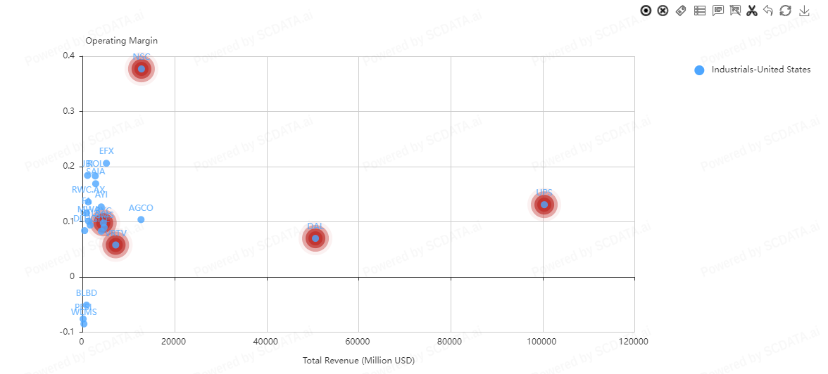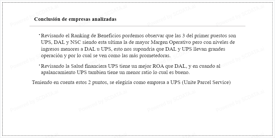 Revisando el Ranking de Beneficios pordemos observar que las 3 del primer puestos son UPS, DAL y NSC siendo esta ultima la de mayor Margen Operativo pero con niveles de ingresos menores a DAL u UPS, esto nos supondria que DAL y UPS llevan grandes operación y por lo cual se ven como las más prometedoras.