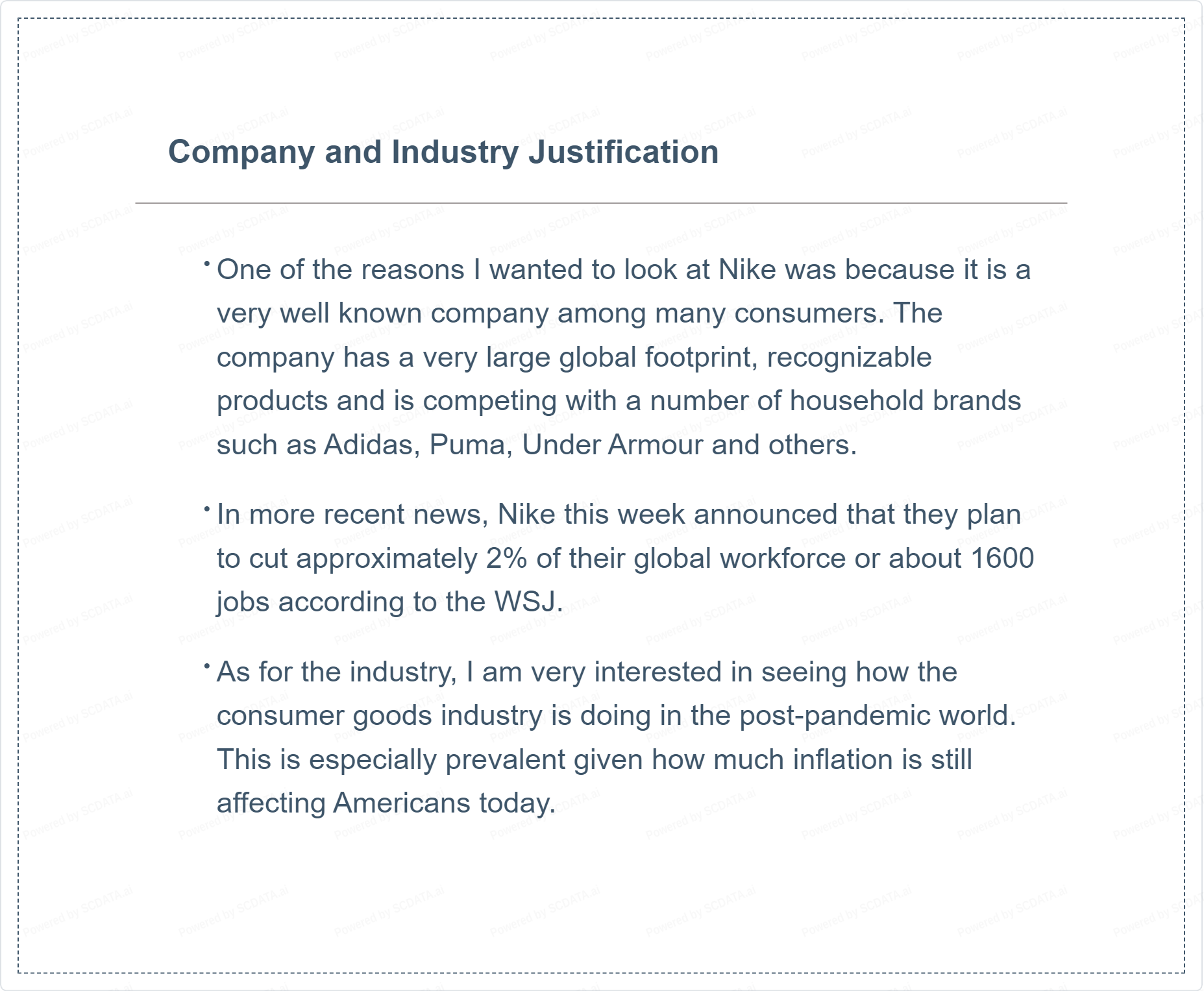 As for the industry, I am very interested in seeing how the consumer goods industry is doing in the post-pandemic world. This is especially prevalent given how much inflation is still affecting Americans today.