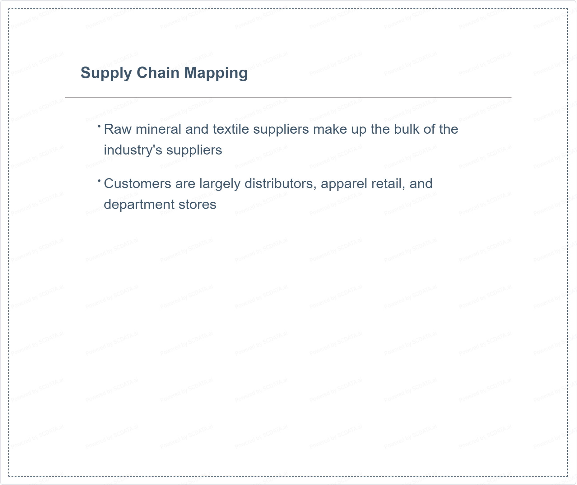 Raw mineral and textile suppliers make up the bulk of the industry's suppliers
