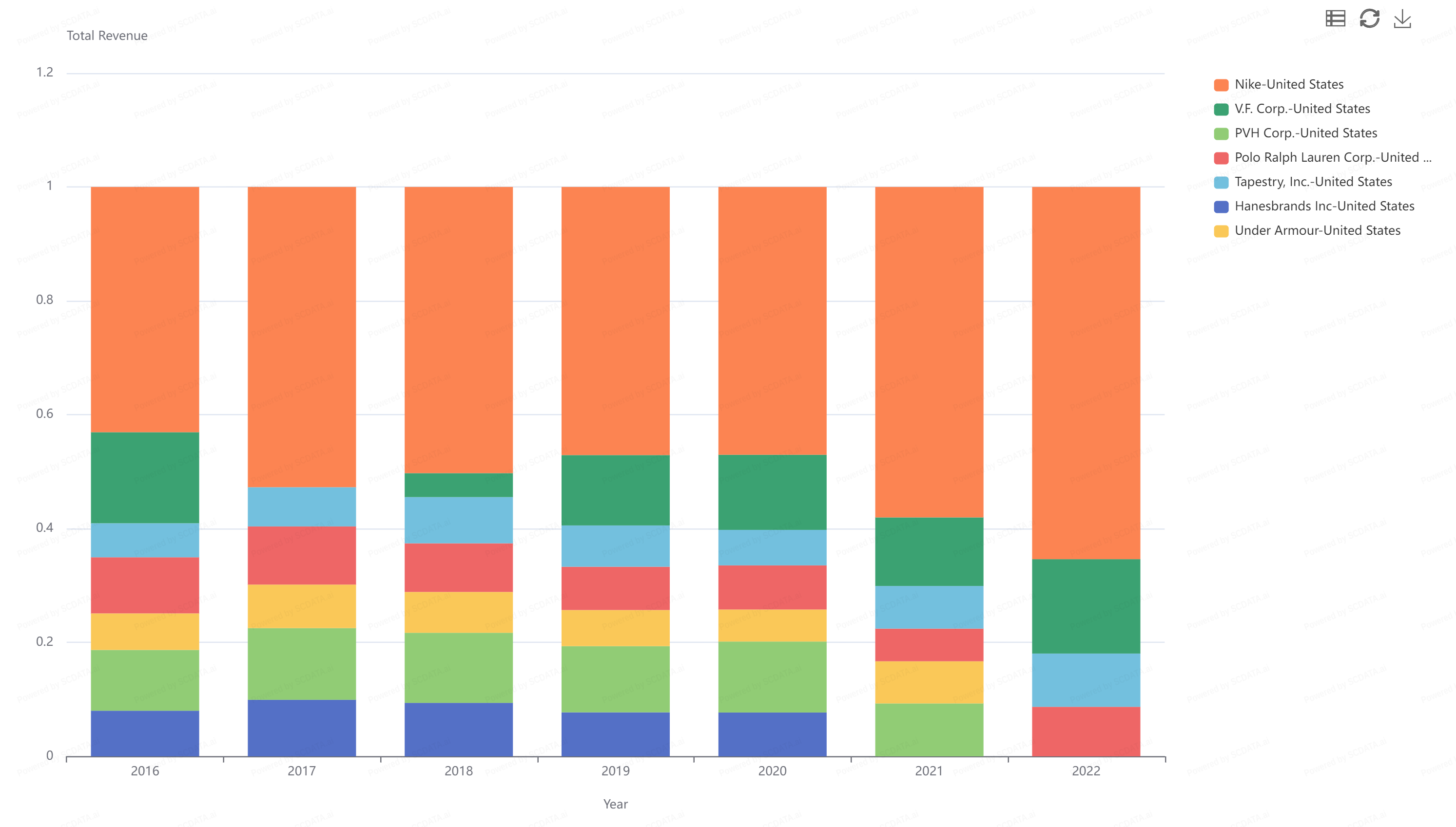 Nike currently represents 65% of the industry's revenue in 2022!
