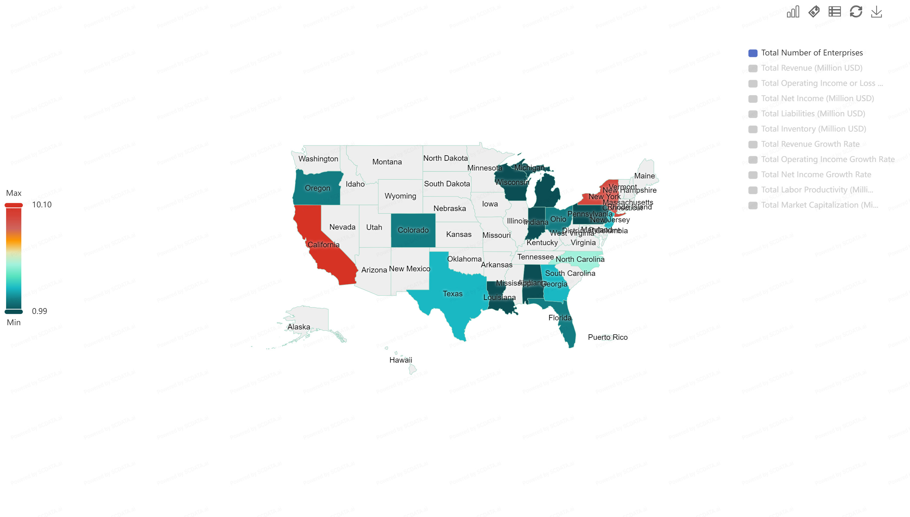 California and New York have the highest number of enterprises from this industry.