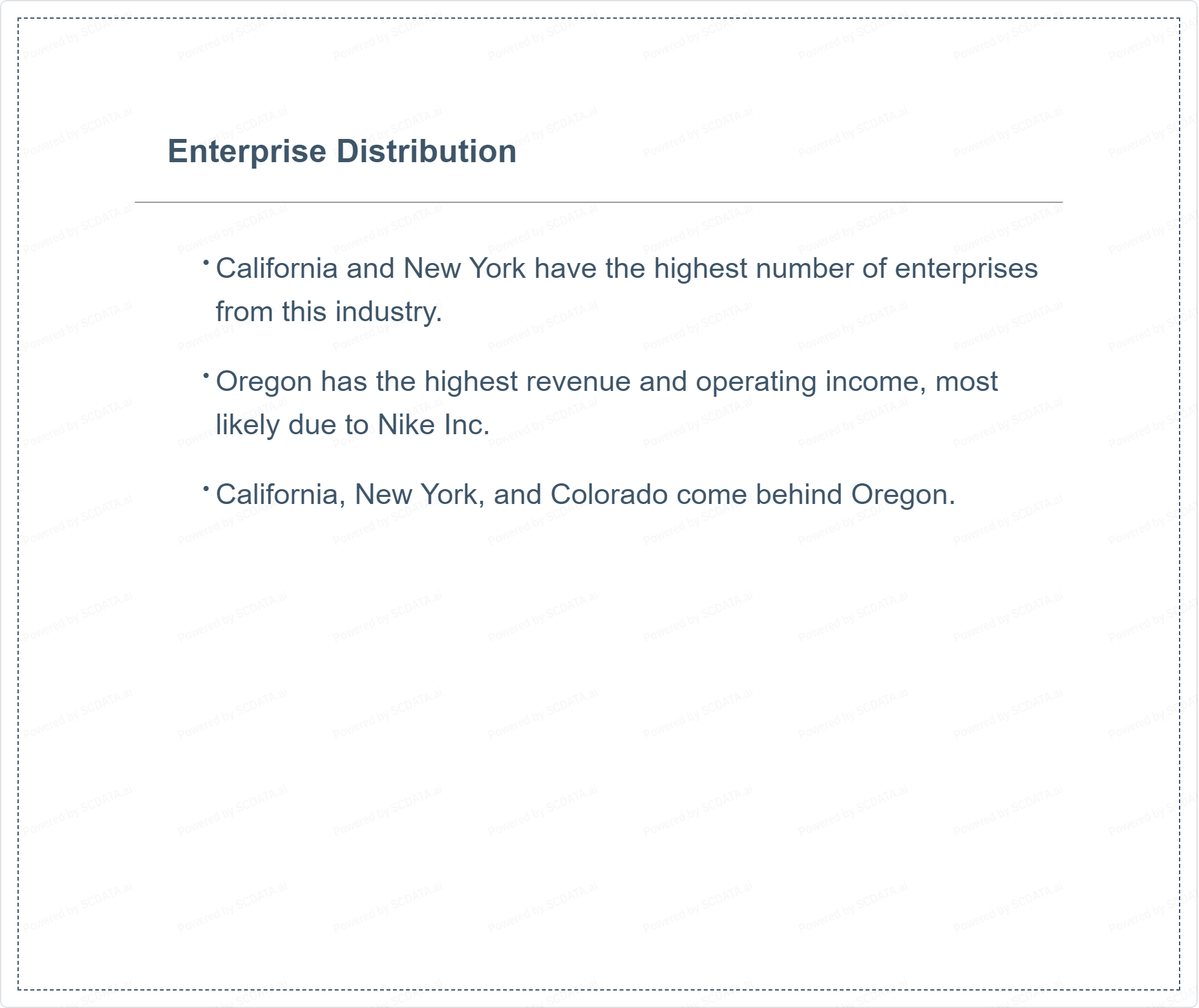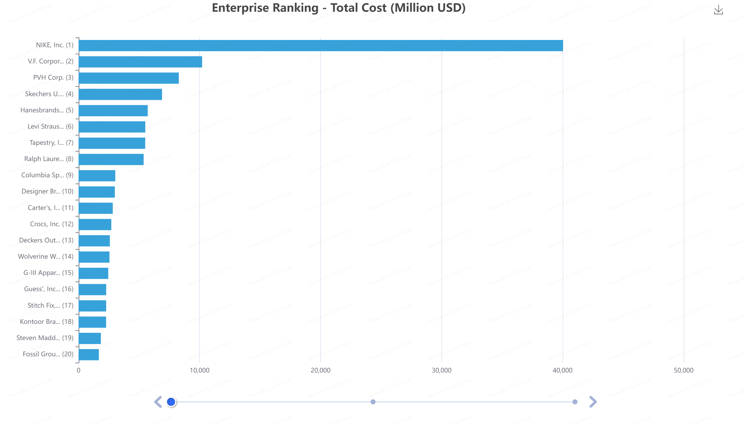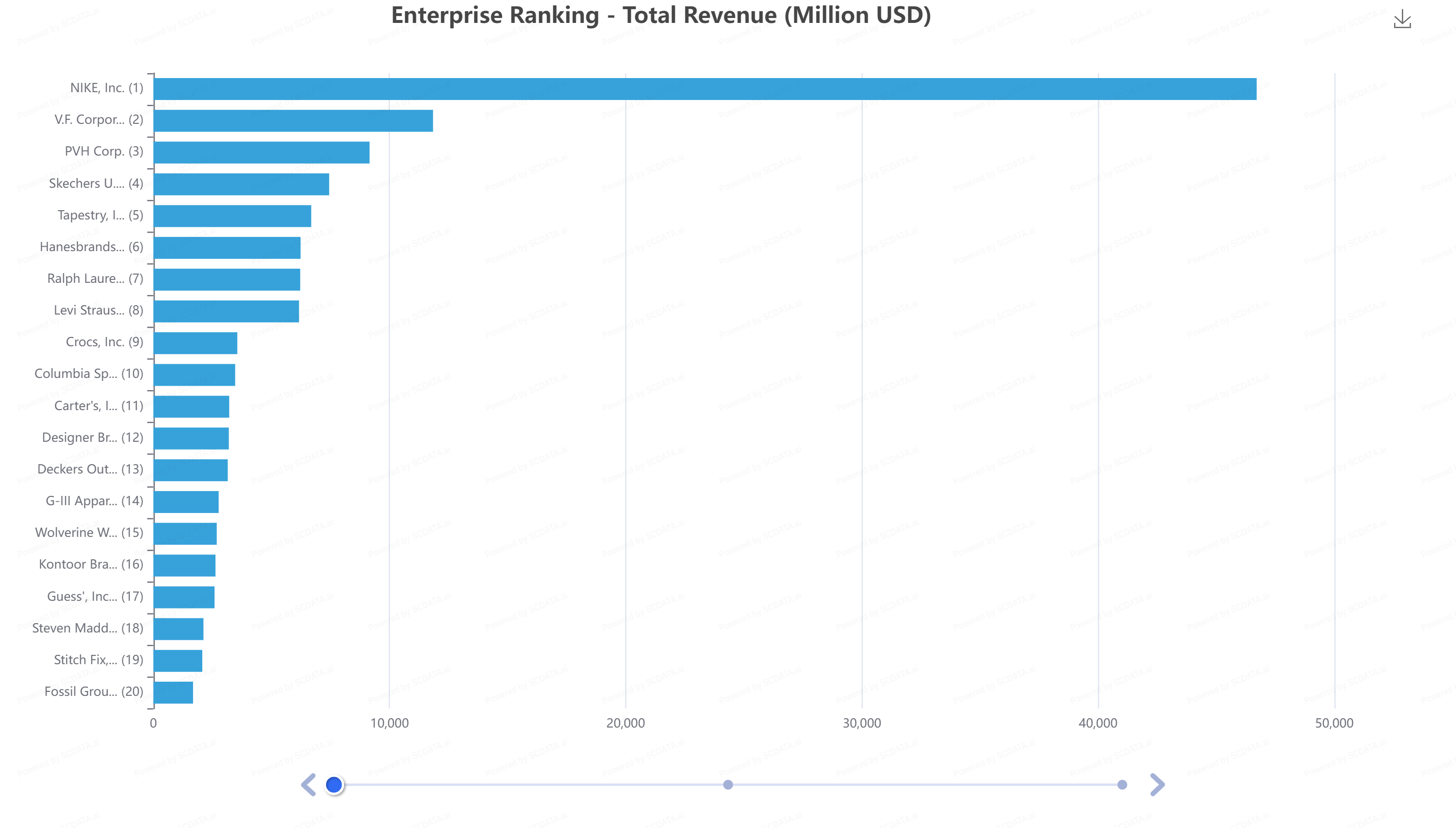 Nike is the only firm in the industry that has revenues greater than $50 billion. Many firms in the industry have much smaller revenues compared to the Oregon based company.