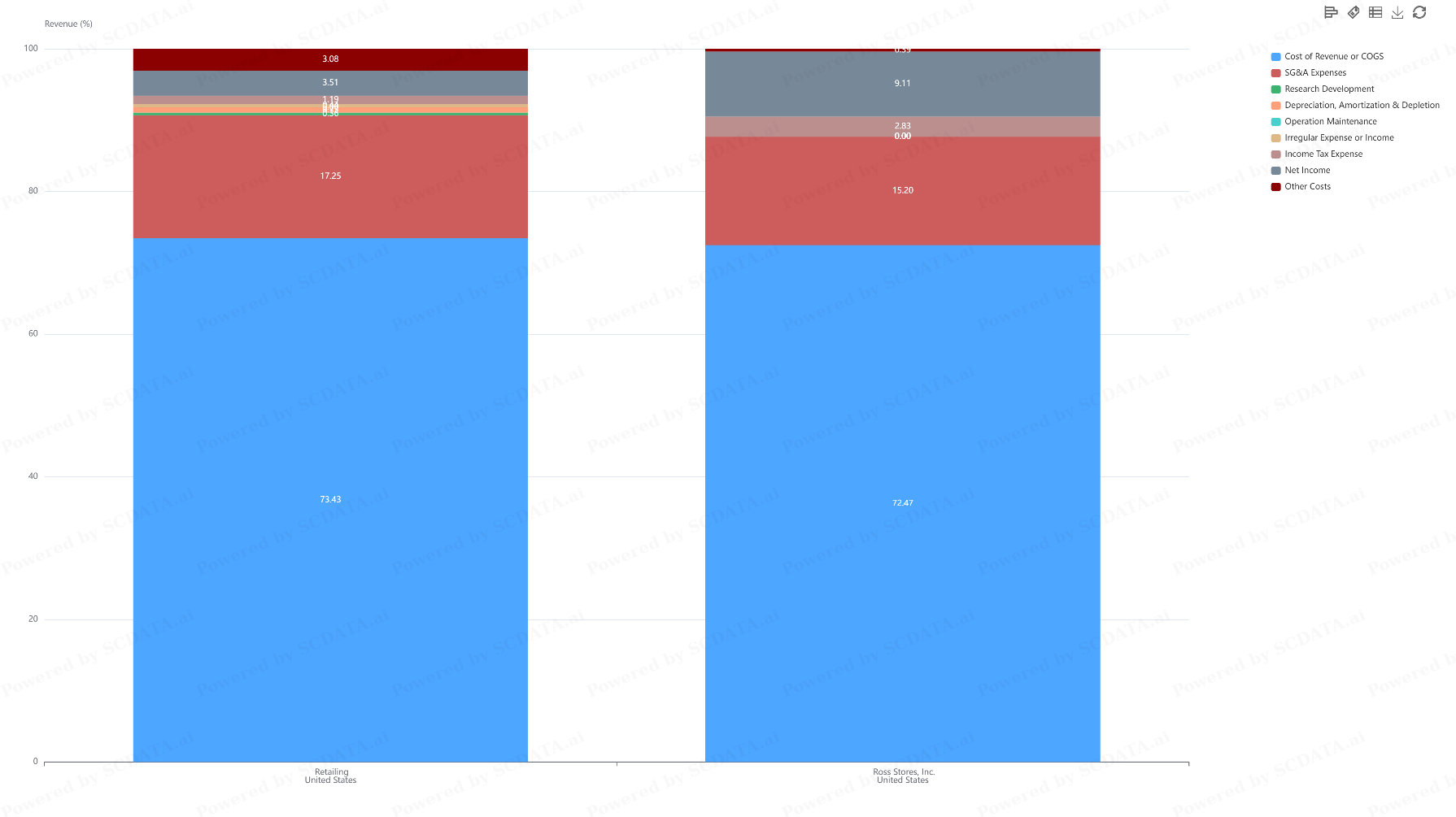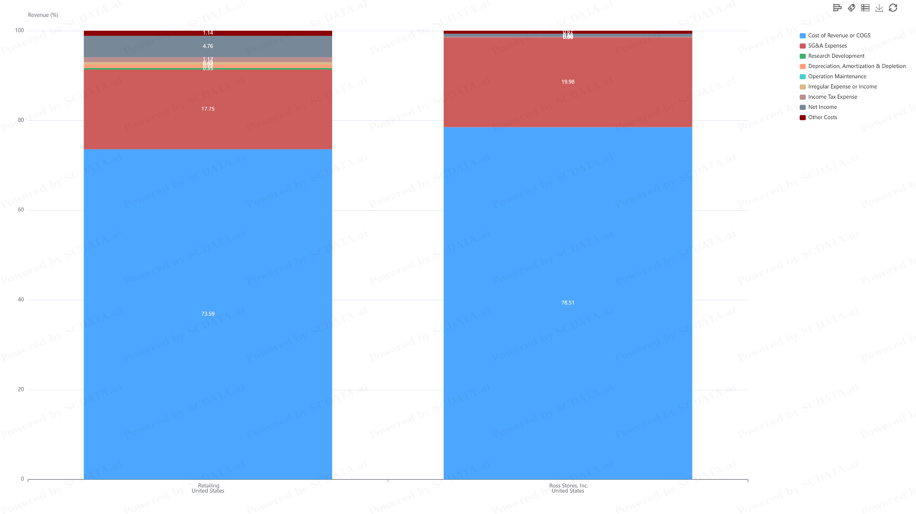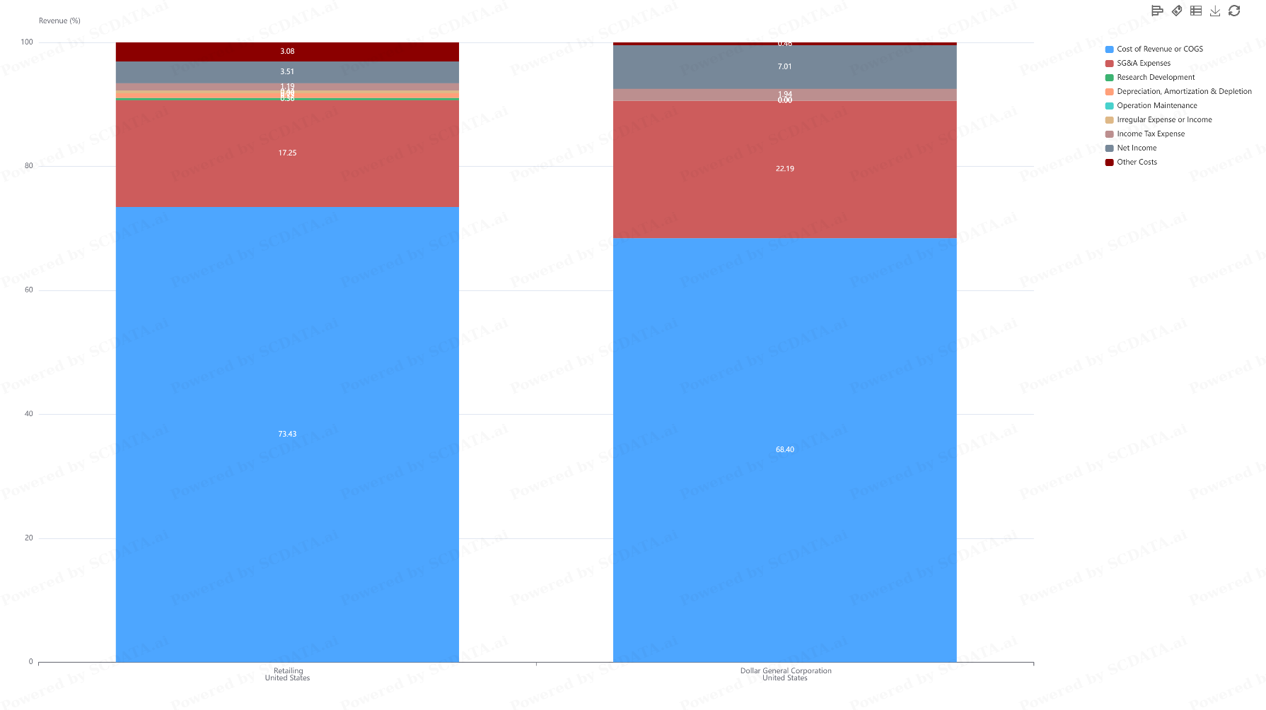 Comparing both revenue breakdowns for 2021 and 2022. We can see that SG&A expenses has slightly decreased in 2022 compared to the initial 19.90%. The COGS has remained steady with it being initially. Other than that nothing to major or straight up distinctions that are outliers even comparing to the industry average in the US. Net Income has rose to about 6.55% in 2022 too, and Other Costs was wiped from Target in 2022 as well.