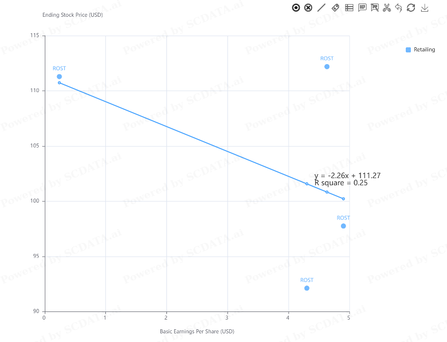With Net Income both companies shortly after COVID shot up and began the recovery process. Though, companies like TJX overperformed competitors like Ross Stores dramatically. Total Revenue reveals Ross Stores lack in revenue, but has shown promise right after 2021 for their recovery. Current Ratio: We can see Ross Stores outperforming in terms of liquidity compared to TJX. Staying above 1.0 threshold compared to other companies like Target that we analyzed before. They do have signs of potential longevity/lower when it comes Liability Asset Ratio as they're consistent in this metric compared to TJX. However still worth mentioning that the weak correlation is quite alarming for investors looking to invest for Ross Stores.