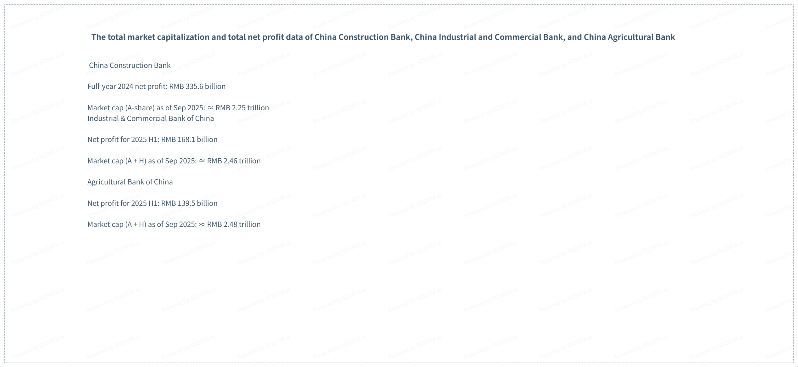 The total market capitalization and total net profit data of China Construction Bank, China Industrial and Commercial Bank, and China Agricultural Bank