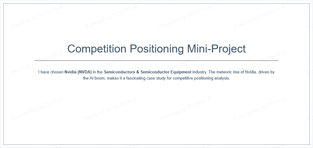 I have chosen Nvidia (NVDA) in the Semiconductors & Semiconductor Equipment industry. The meteoric rise of Nvidia, driven by the AI boom, makes it a fascinating case study for competitive positioning analysis.