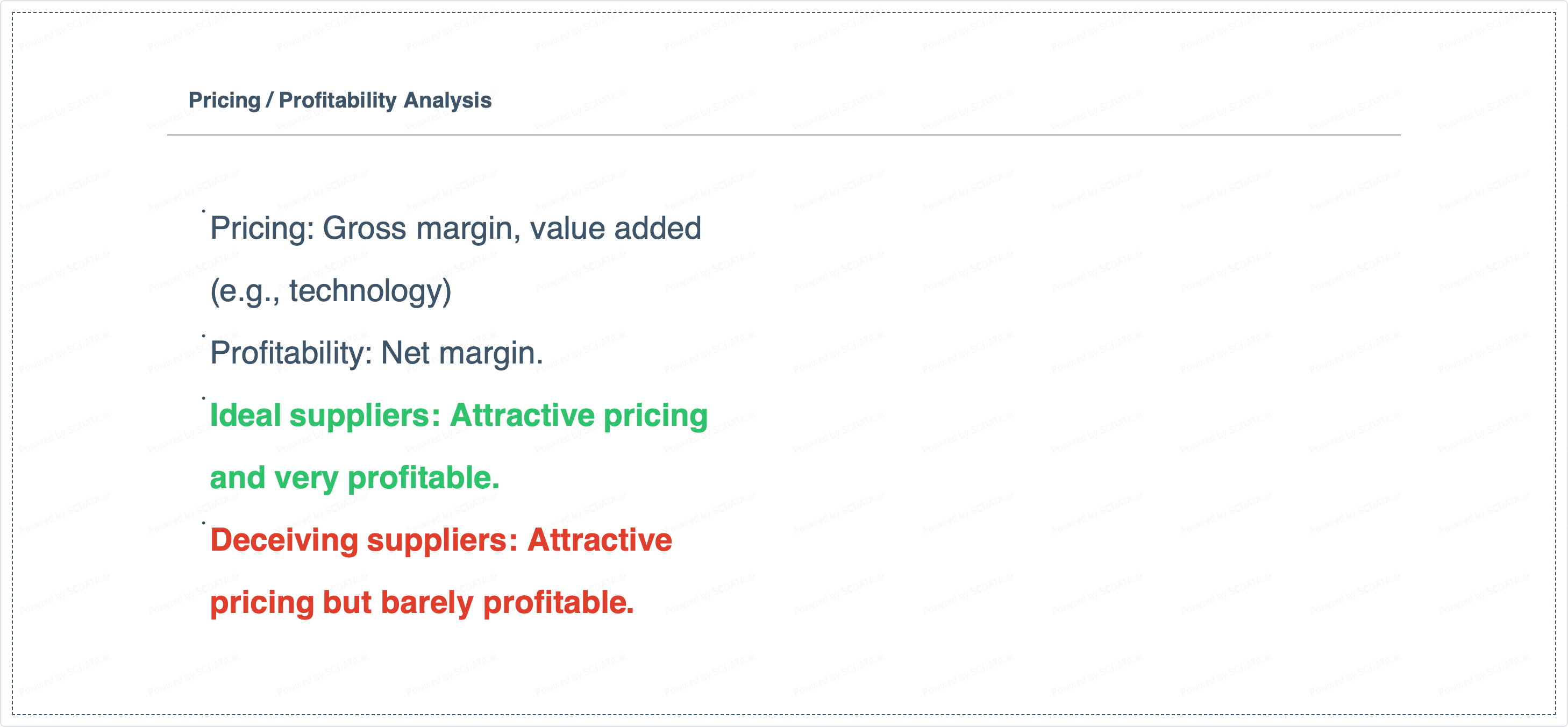 Compare suppliers’ pricing, profitability, health and production capability